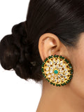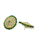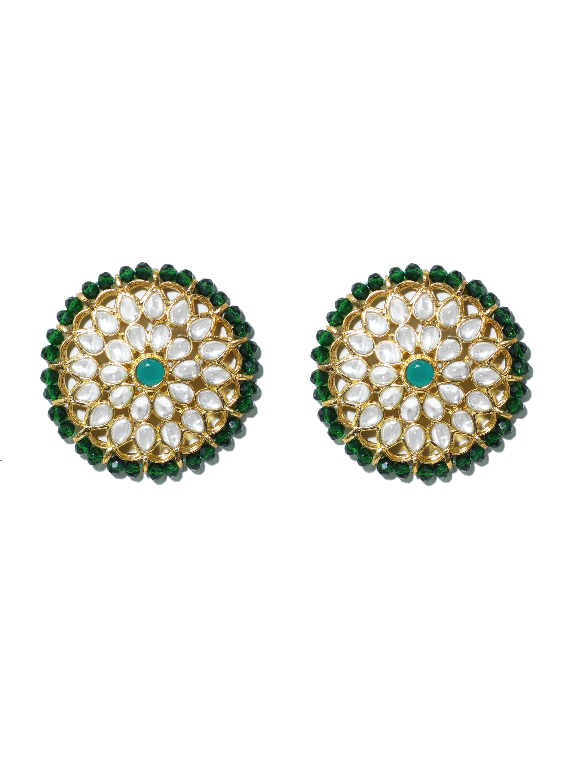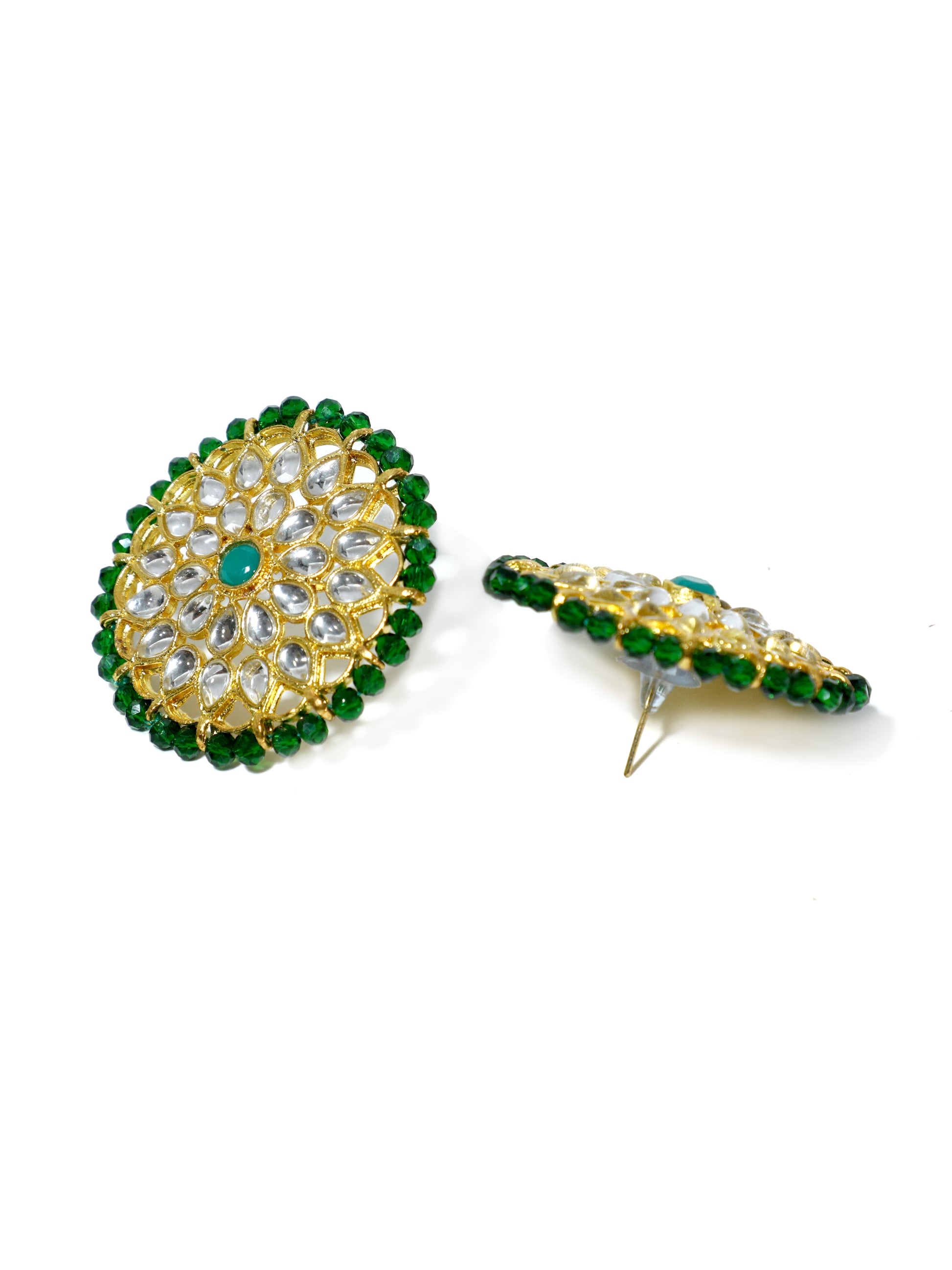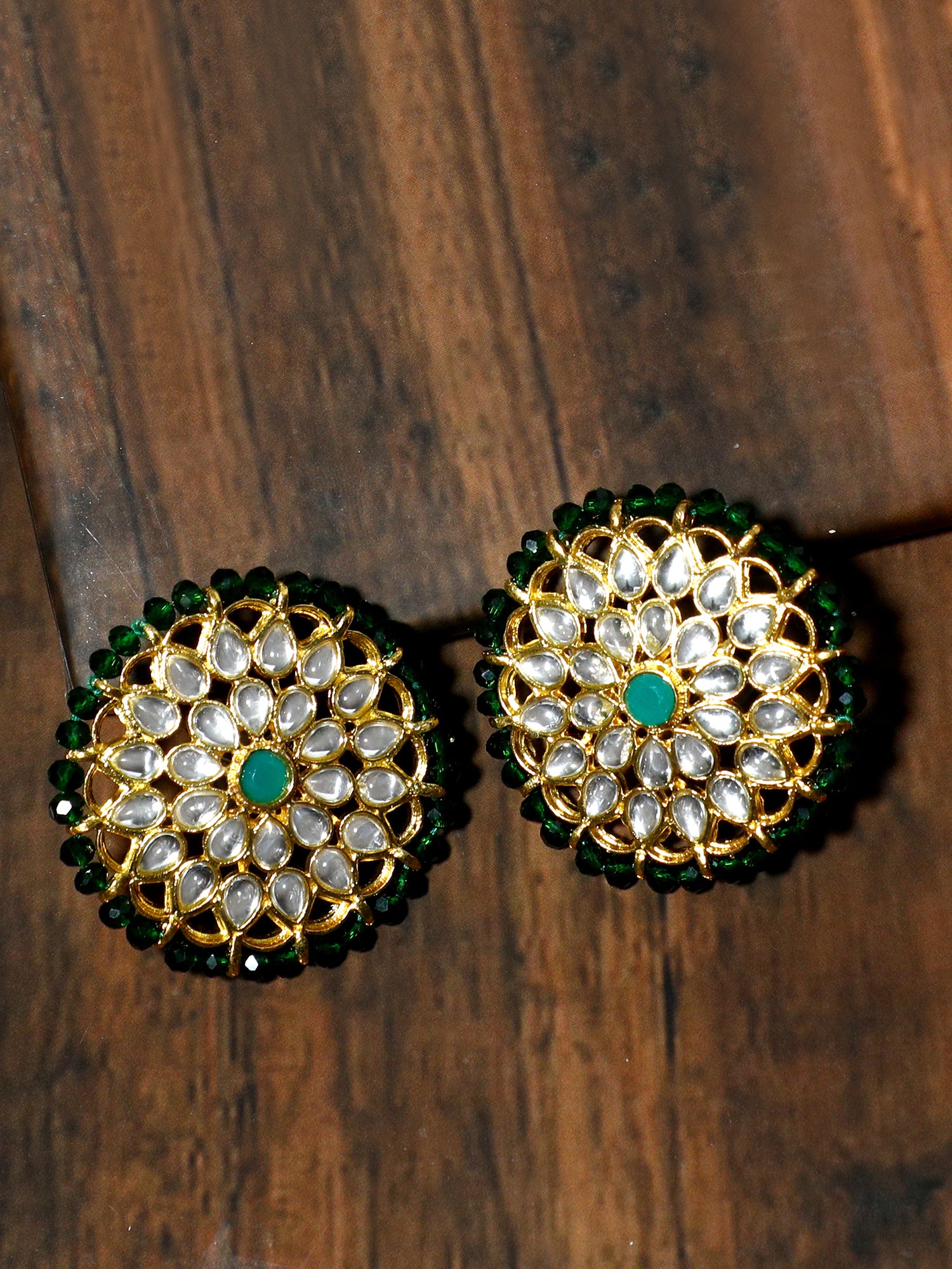 - Gold Plated Green Beads Kundan Stud Earrings. It's Five Layer Micro Gold Plated and Embellished with Kundan for High Durability. Intricate high polish creates glamorous reflections and adds a luxurious look. Perfect for Weddings, Festivals, Traditional Occasions. Best when paired with any Indian or Indo Western Attire.