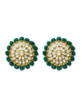 Gold Plated Green Beads Kundan Stud Earrings