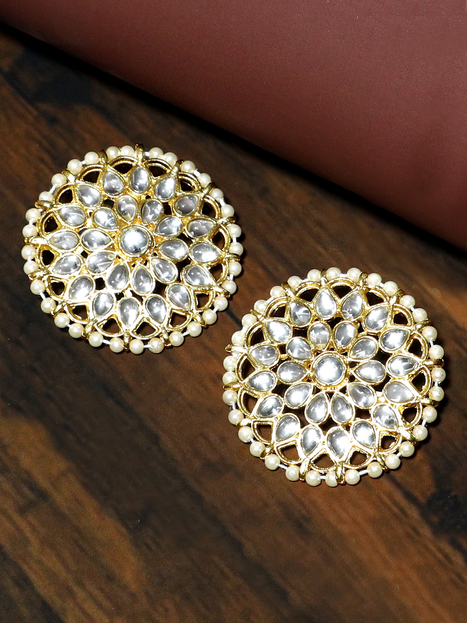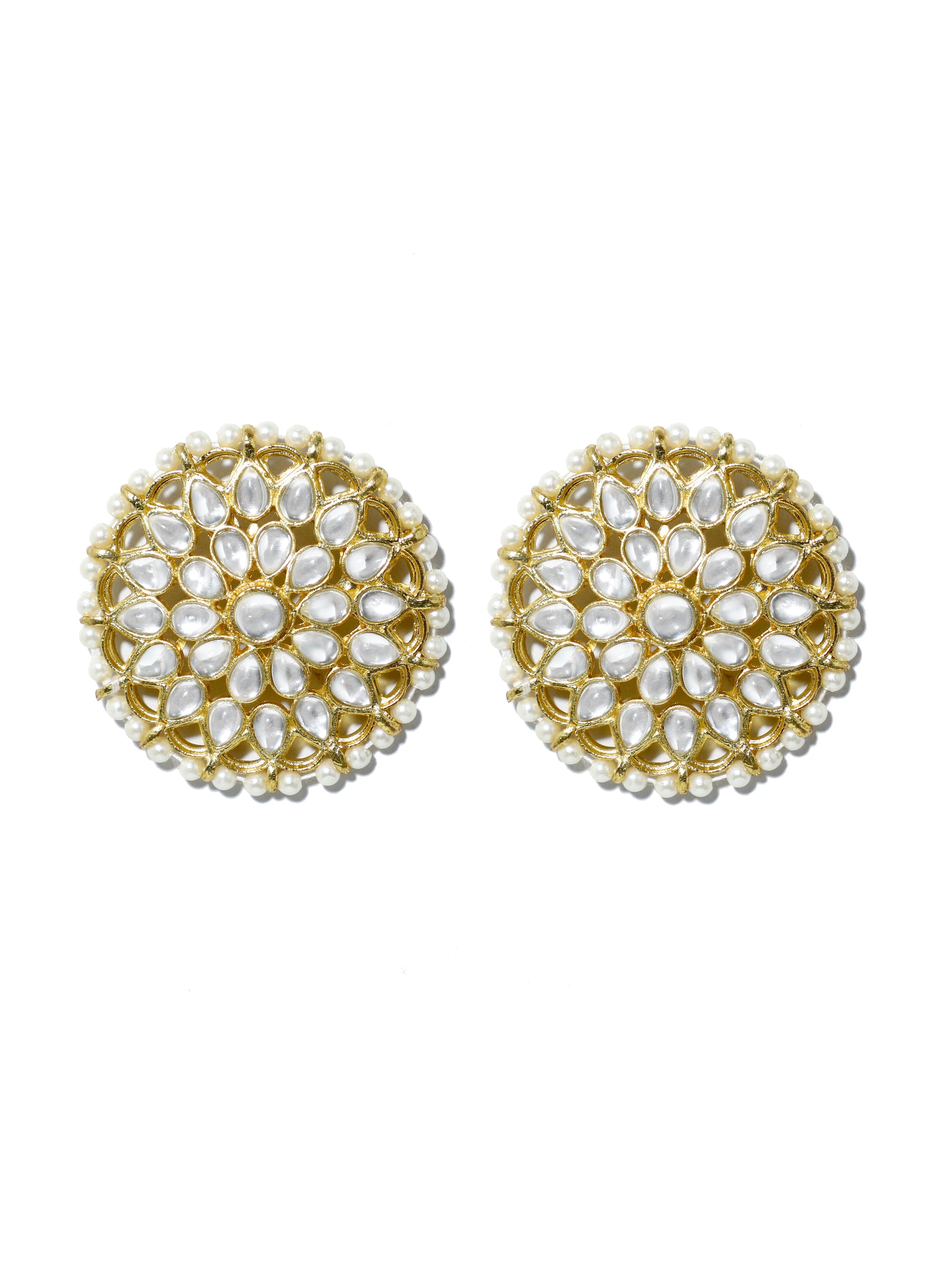 Gold Plated Pearl Beads Kundan Stud Earrings