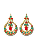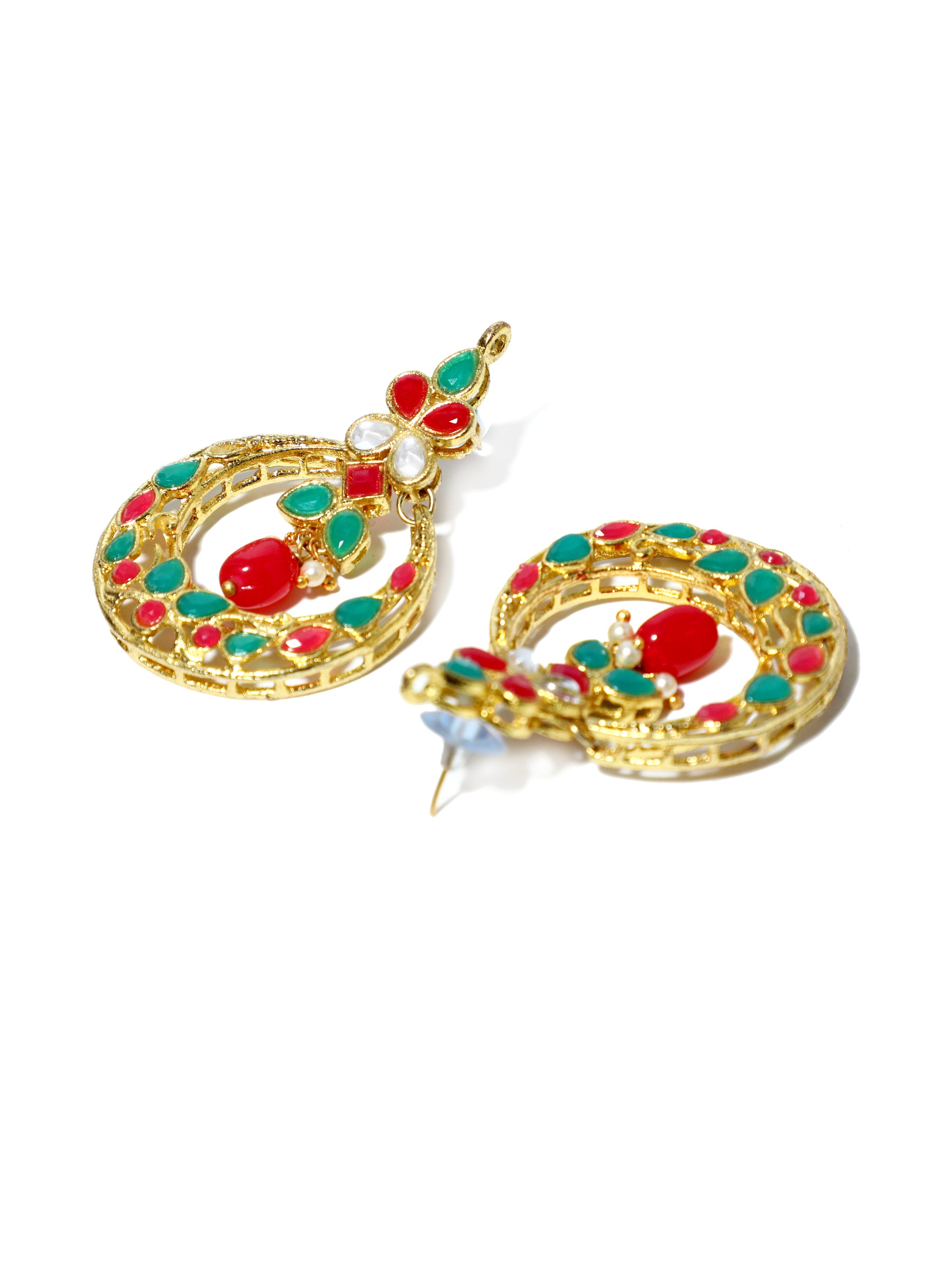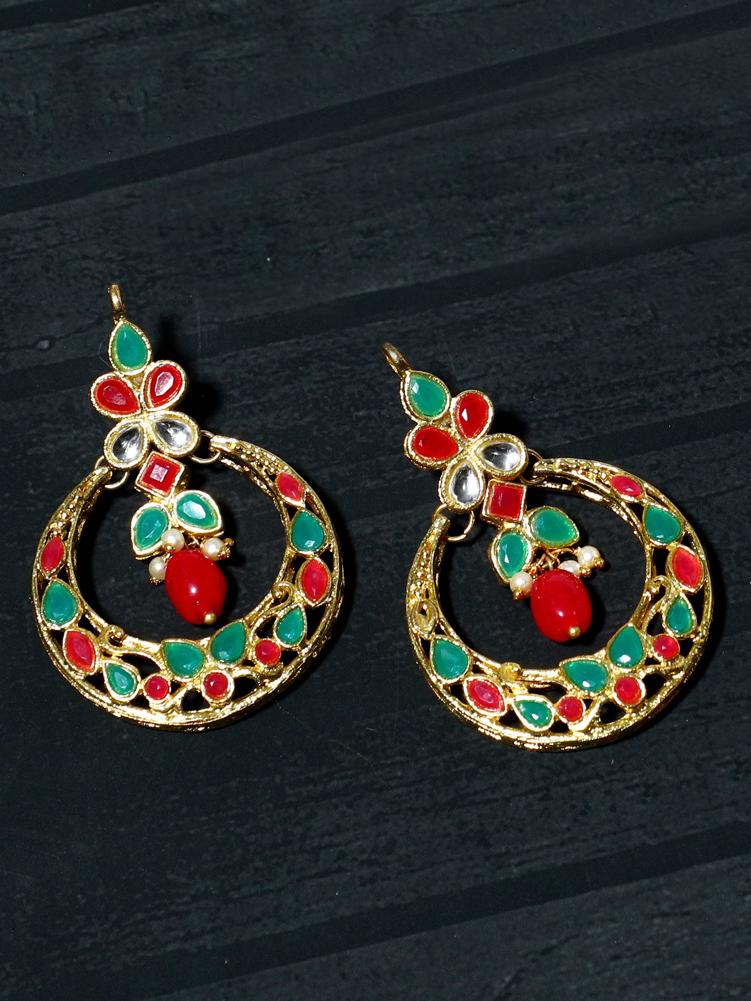 Gold Plated Red and Green Kundan Chnadbali Earrings