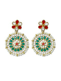 Gold Plated Green and Pearl Beads Kundan Dangler Earrings with Maangtikka