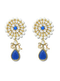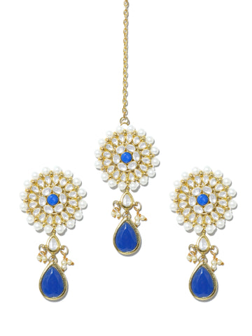 Gold Plated Pearl Beads Kundan Dangler Earrings with Maangtikka
