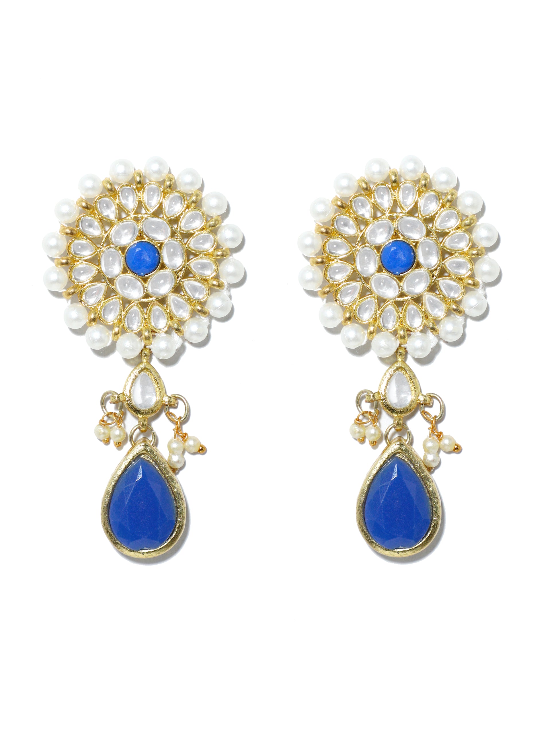 - Gold Plated Pearl Beads Kundan Dangler Earrings with Maangtikka. It's Five Layer Micro Gold Plated and Embellished with Kundan for High Durability. Intricate high polish creates glamorous reflections and adds a luxurious look. Perfect for Weddings, Festivals, Traditional Occasions. Best when paired with any Indian or Indo Western Attire.