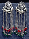 Oxidised Silver Red and Green Kundan Tassel Earrings