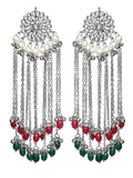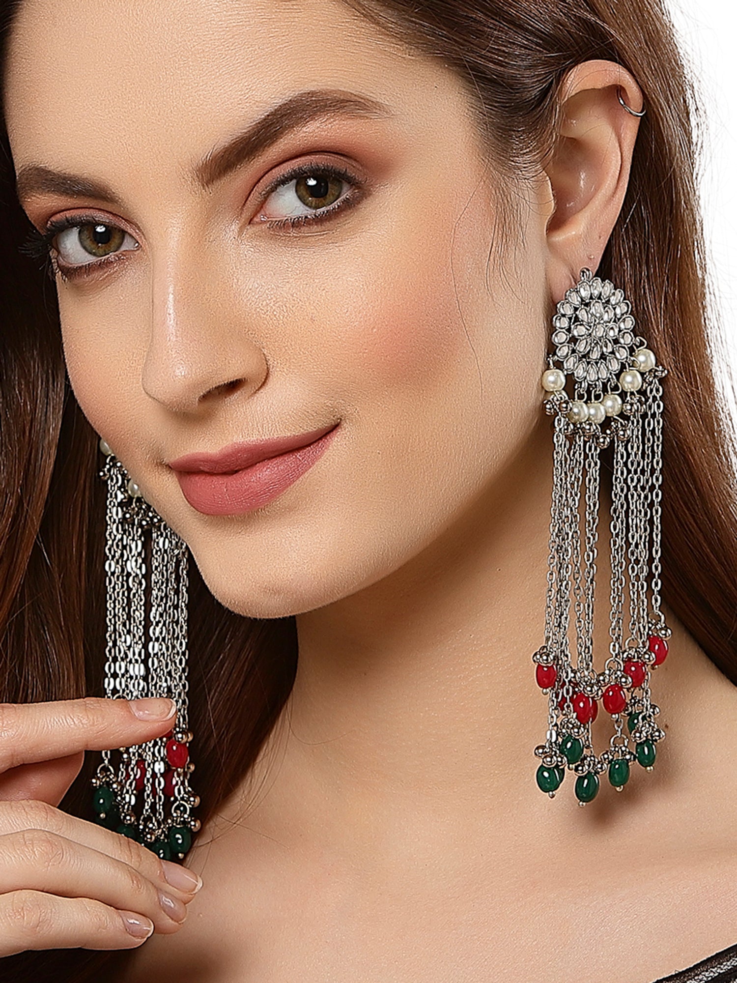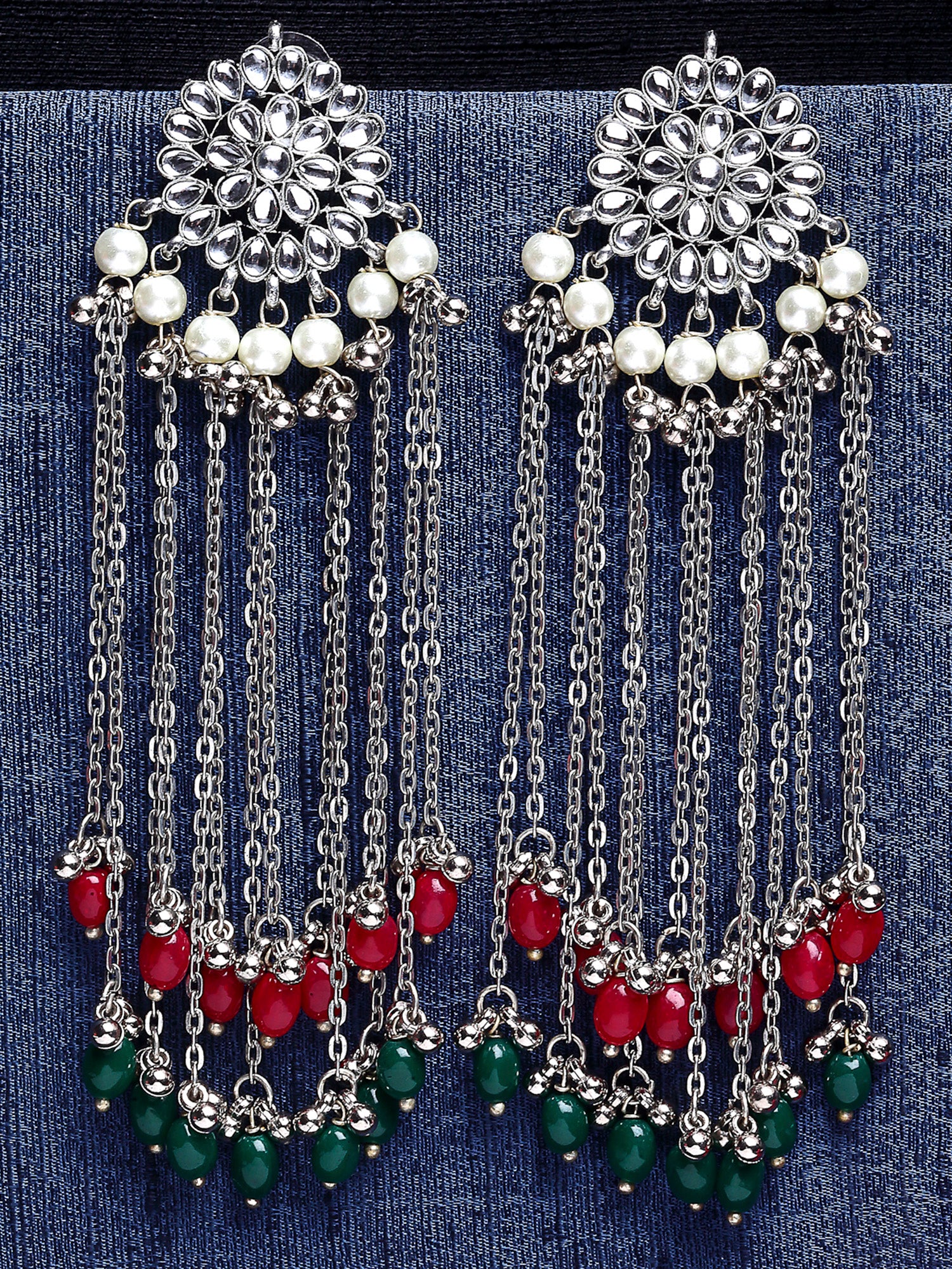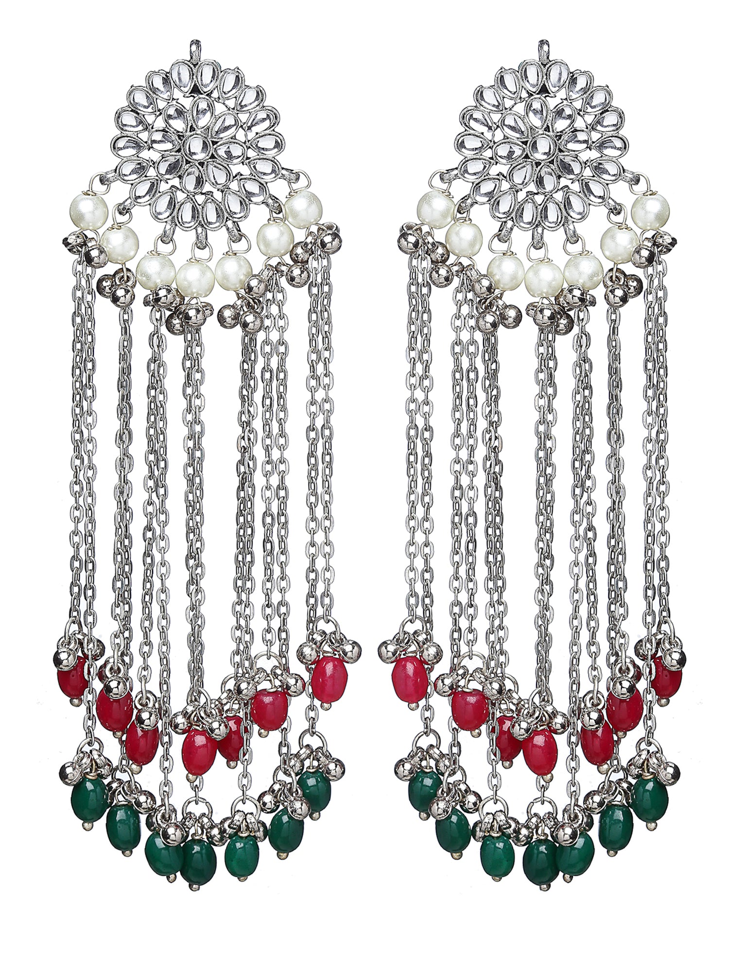 - Karatcart Oxidised Silver Red and Green Kundan Tassel Earrings. It is made with high-quality Kundan Stones which makes them very skin-friendly. Perfect for Weddings, Parties, Festivals, and Traditional Occasions.