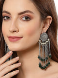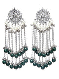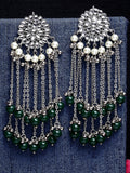 Oxidised Silver Green Beads and Kundan Tassel Earrings
