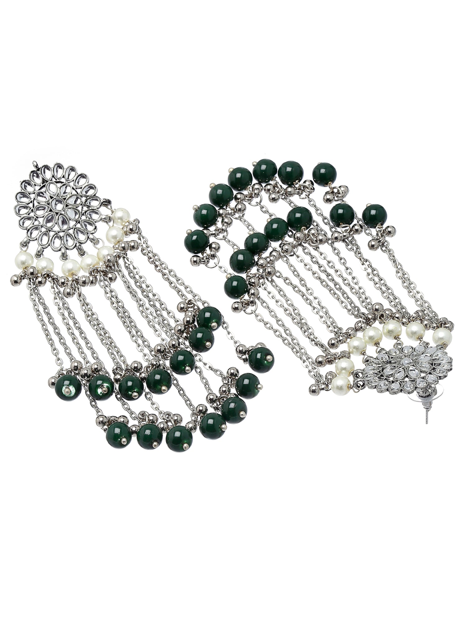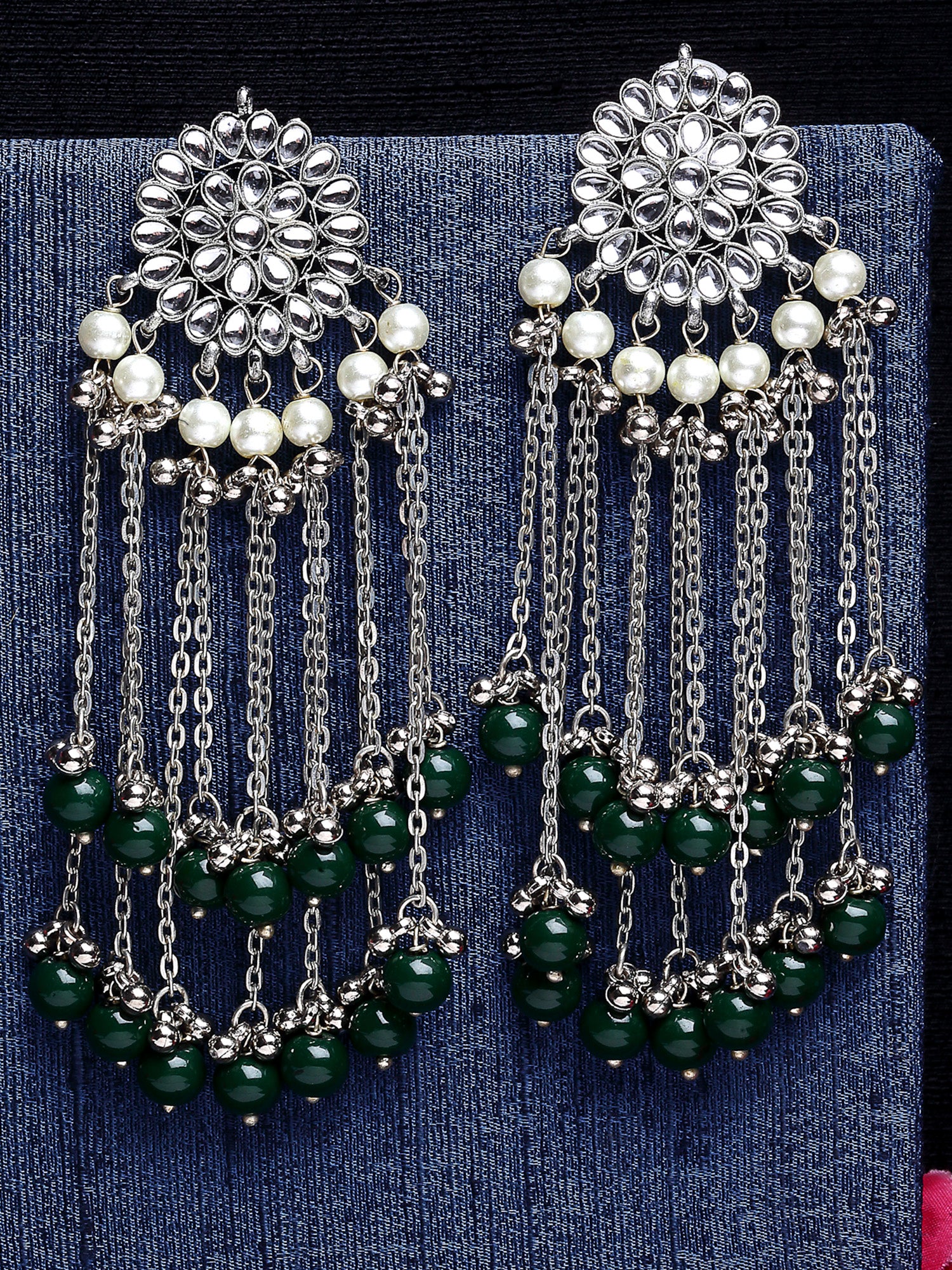 - Karatcart Oxidised Silver Green Beads and Kundan Tassel Earrings. It is made with high-quality Kundan Stones which makes them very skin-friendly. Perfect for Weddings, Parties, Festivals, and Traditional Occasions.