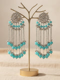 Oxidised Silver Light Blue Beads and Kundan Tassel Earrings