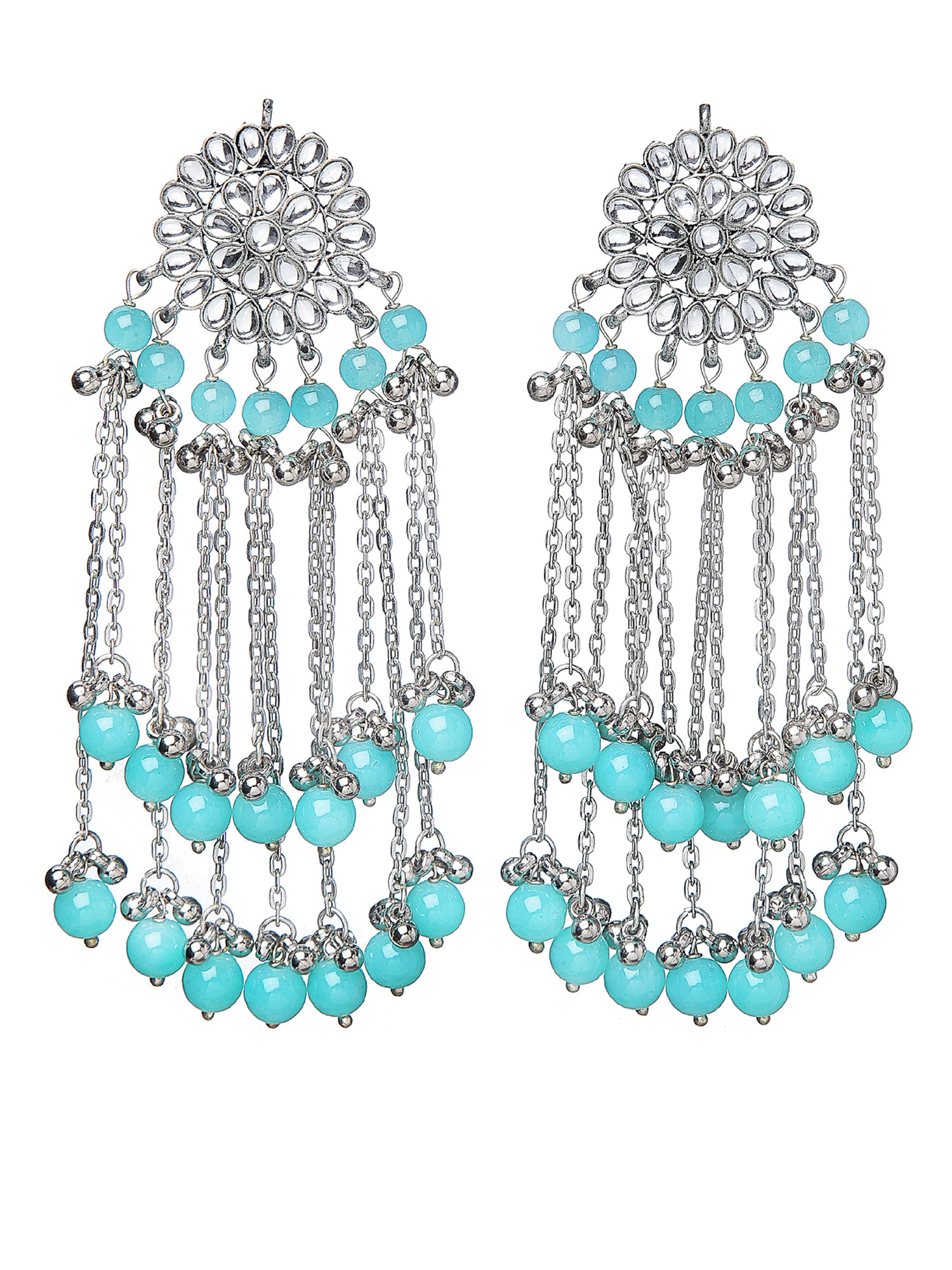 - Karatcart Oxidised Silver Light Blue Beads and Kundan Tassel Earrings. It is made with high-quality Kundan Stones which makes them very skin-friendly. Perfect for Weddings, Parties, Festivals, and Traditional Occasions.