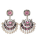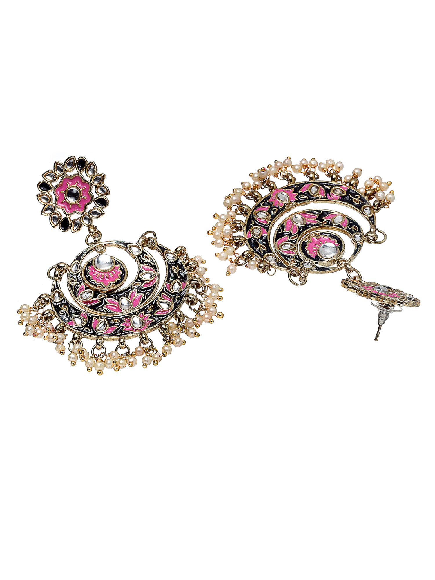 Traditional Pink Meena Kundan Studded Chandbali Earrings