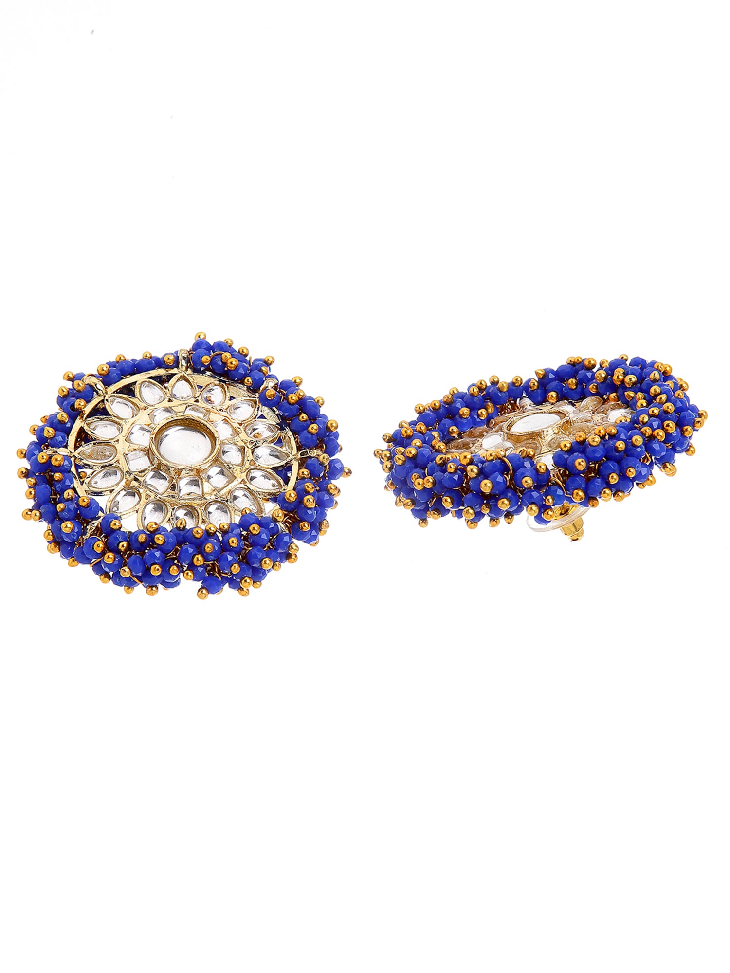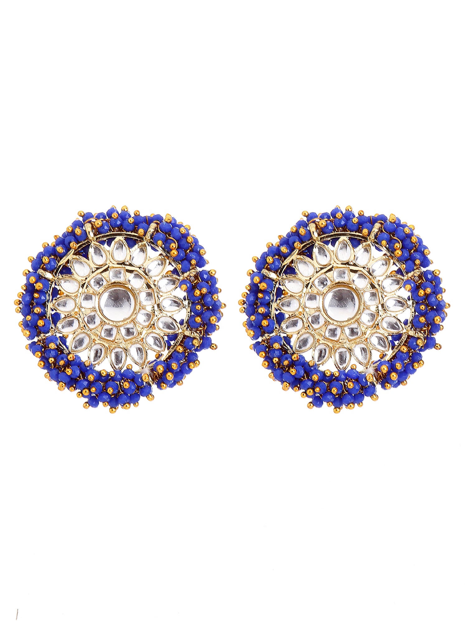 - Traditional Blue Crystal Studded Gold Plated Kundan Stud Earrings. It is made with High-Quality Kundan in combination with opaque crystals. Perfect for Weddings, Parties, Festivals, and Traditional Occasions.