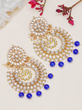 Gold Plated Blue Drop Kundan Chandbali Earrings