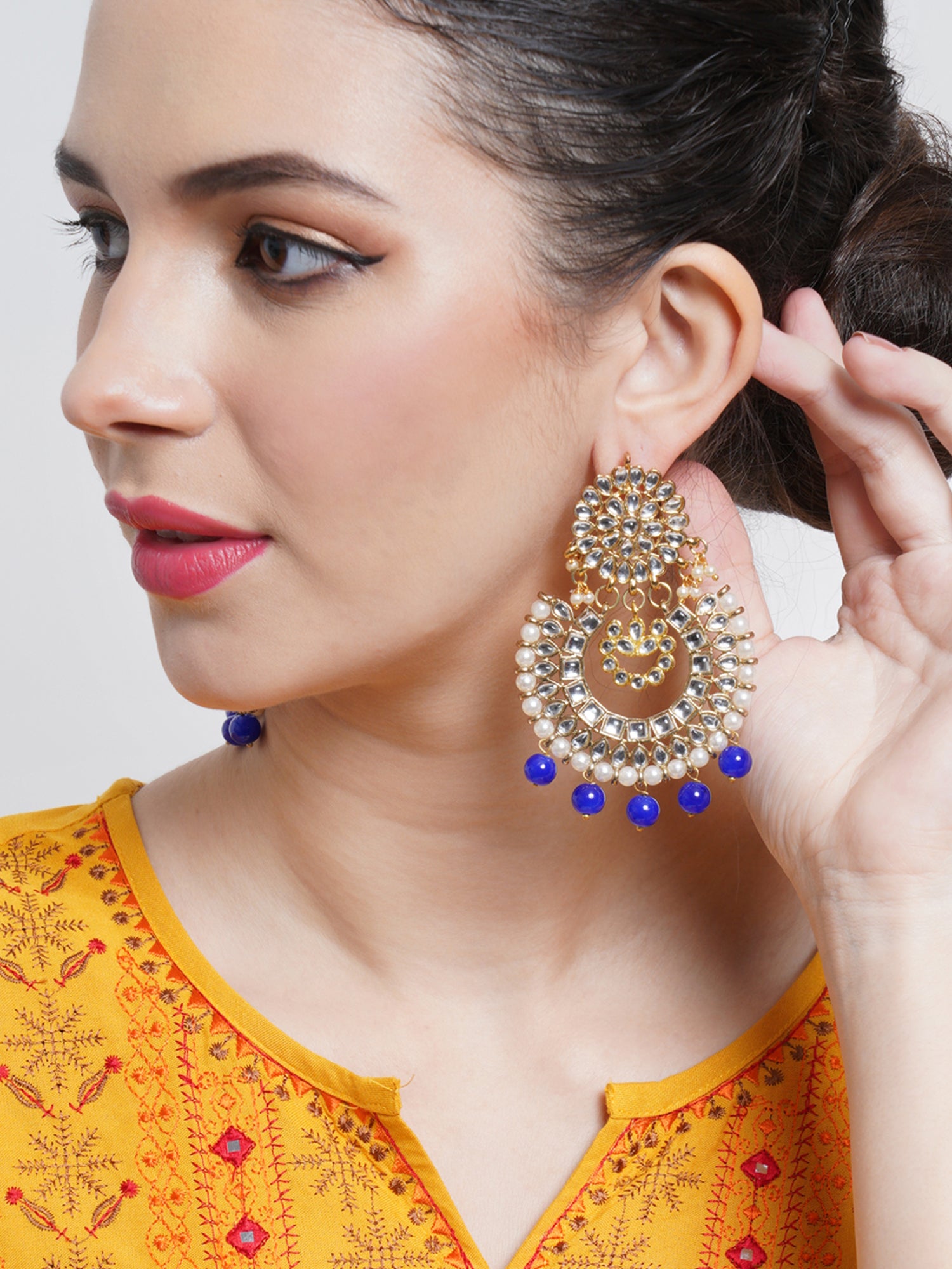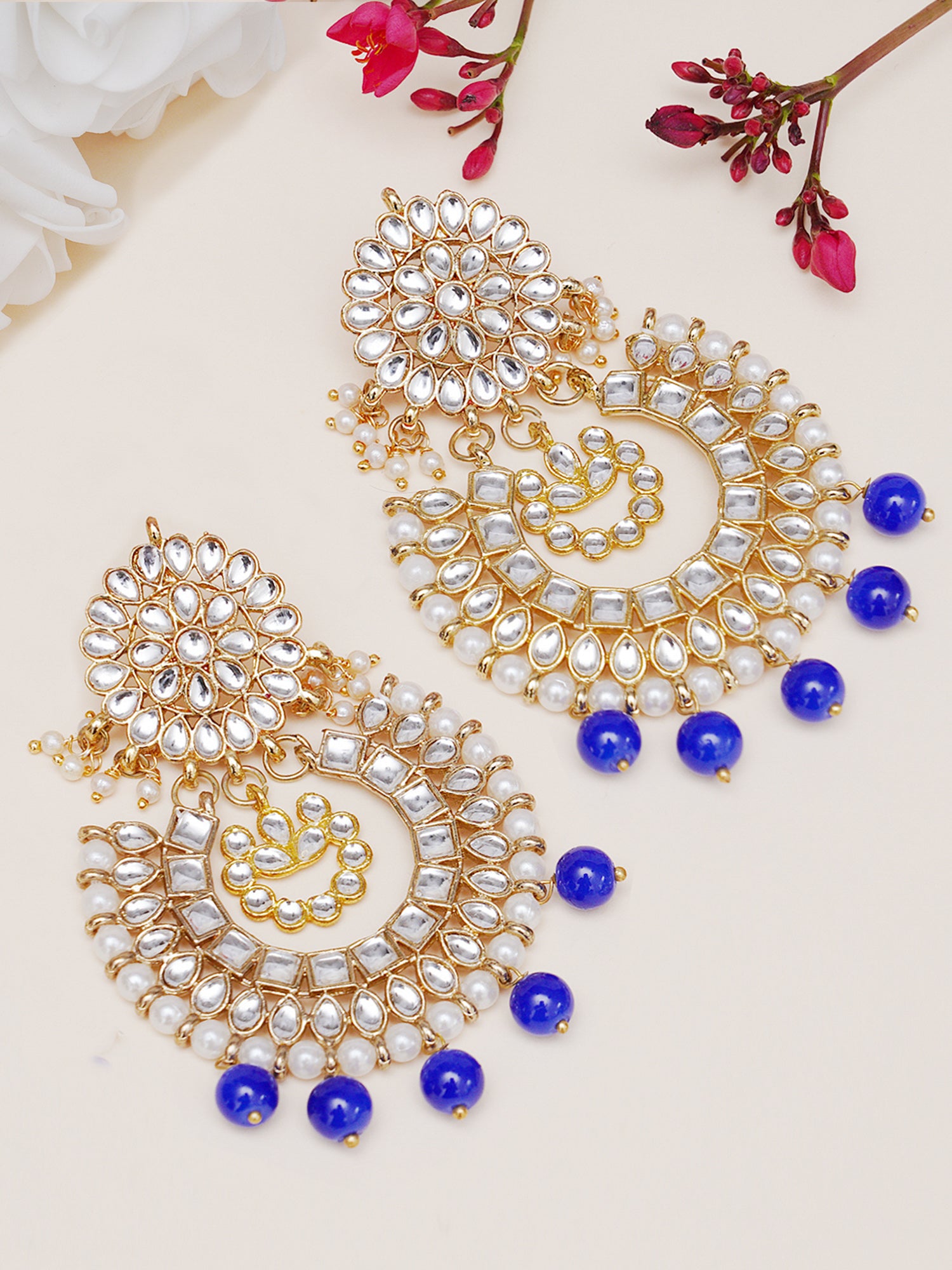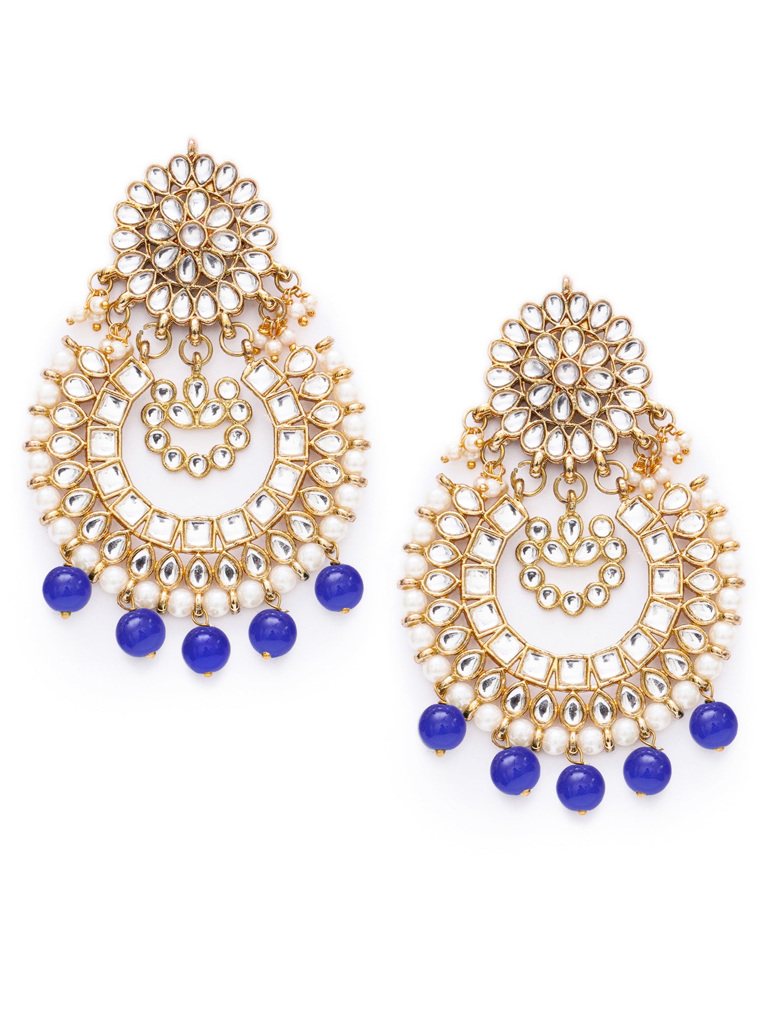 - Karatcart Gold Plated Blue Drop Kundan Chandbali Earrings for Women. Made of High-Quality Metal Alloy as per International Standards which makes it very skin-friendly.
