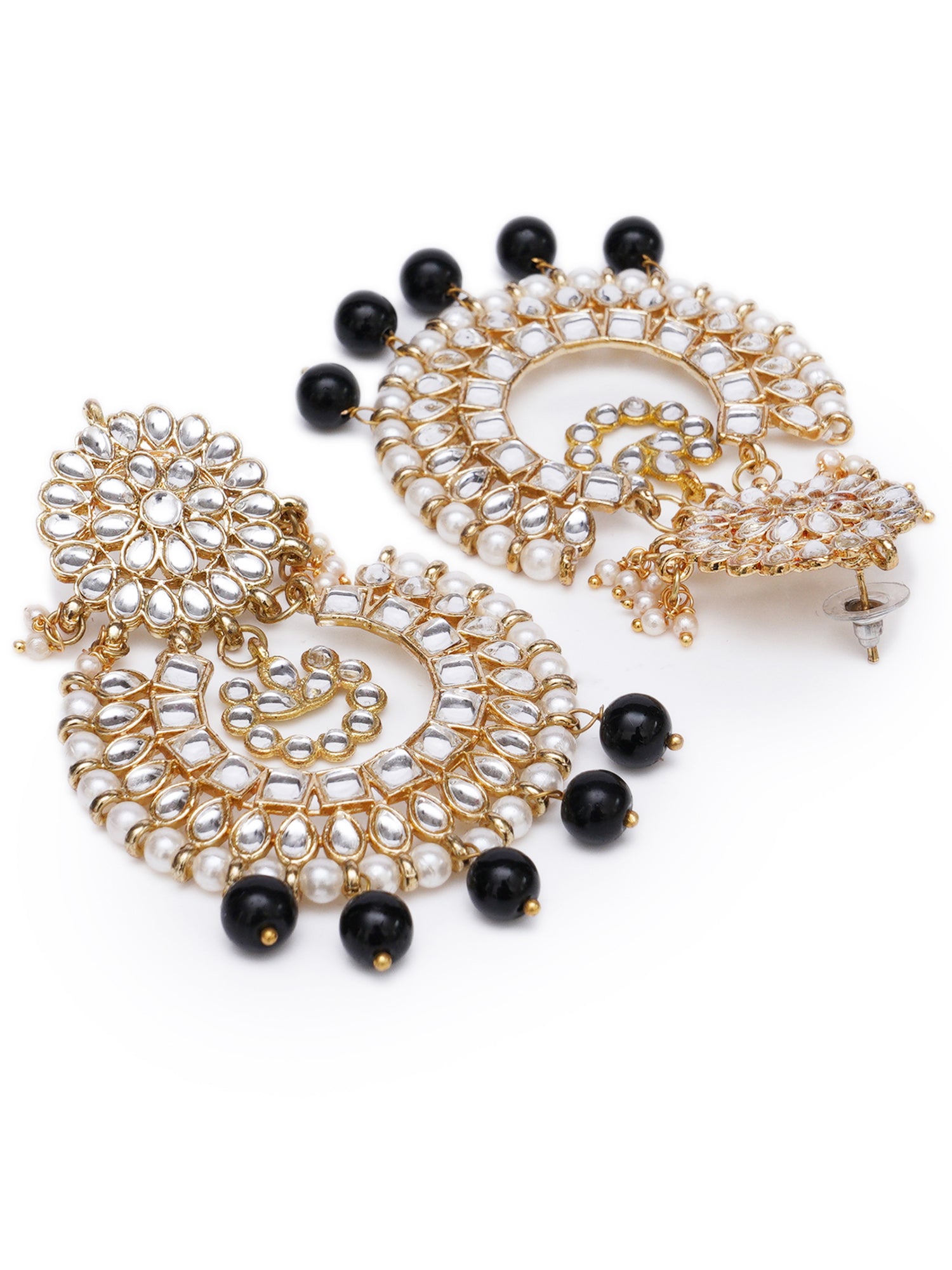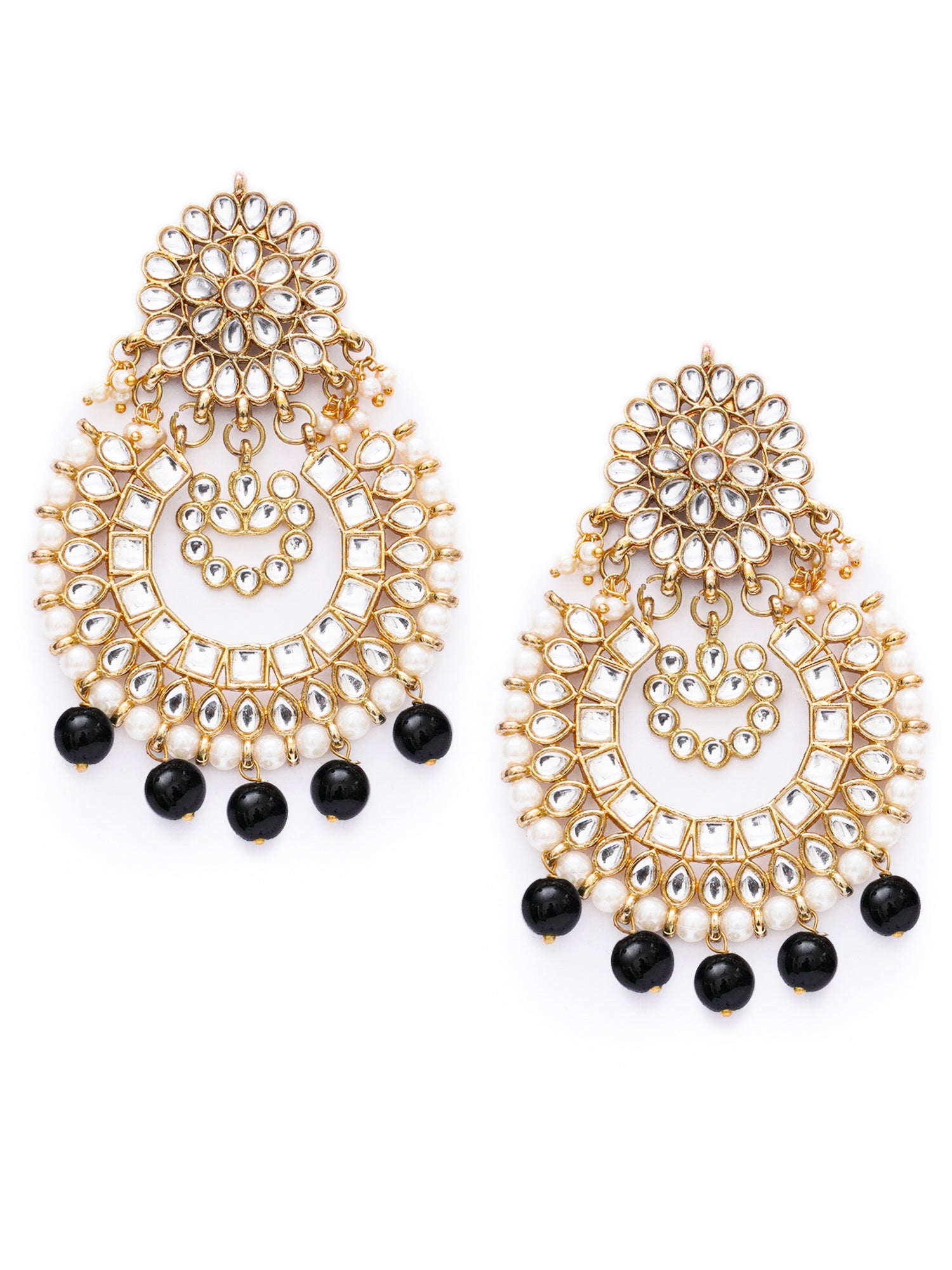 - Karatcart Gold Plated Black Drop Kundan Chandbali Earrings for Women. Made of High-Quality Metal Alloy as per International Standards which makes it very skin-friendly.