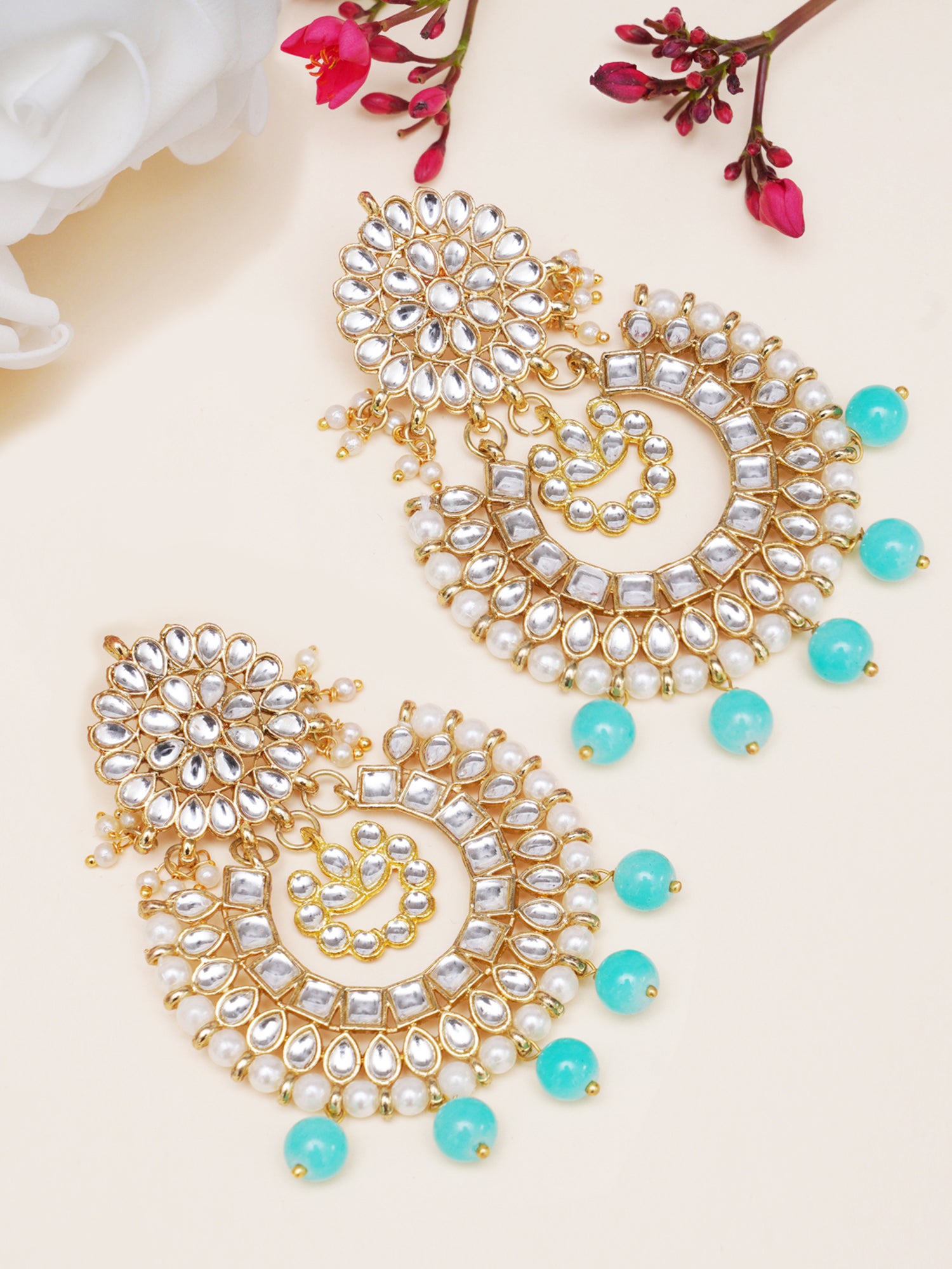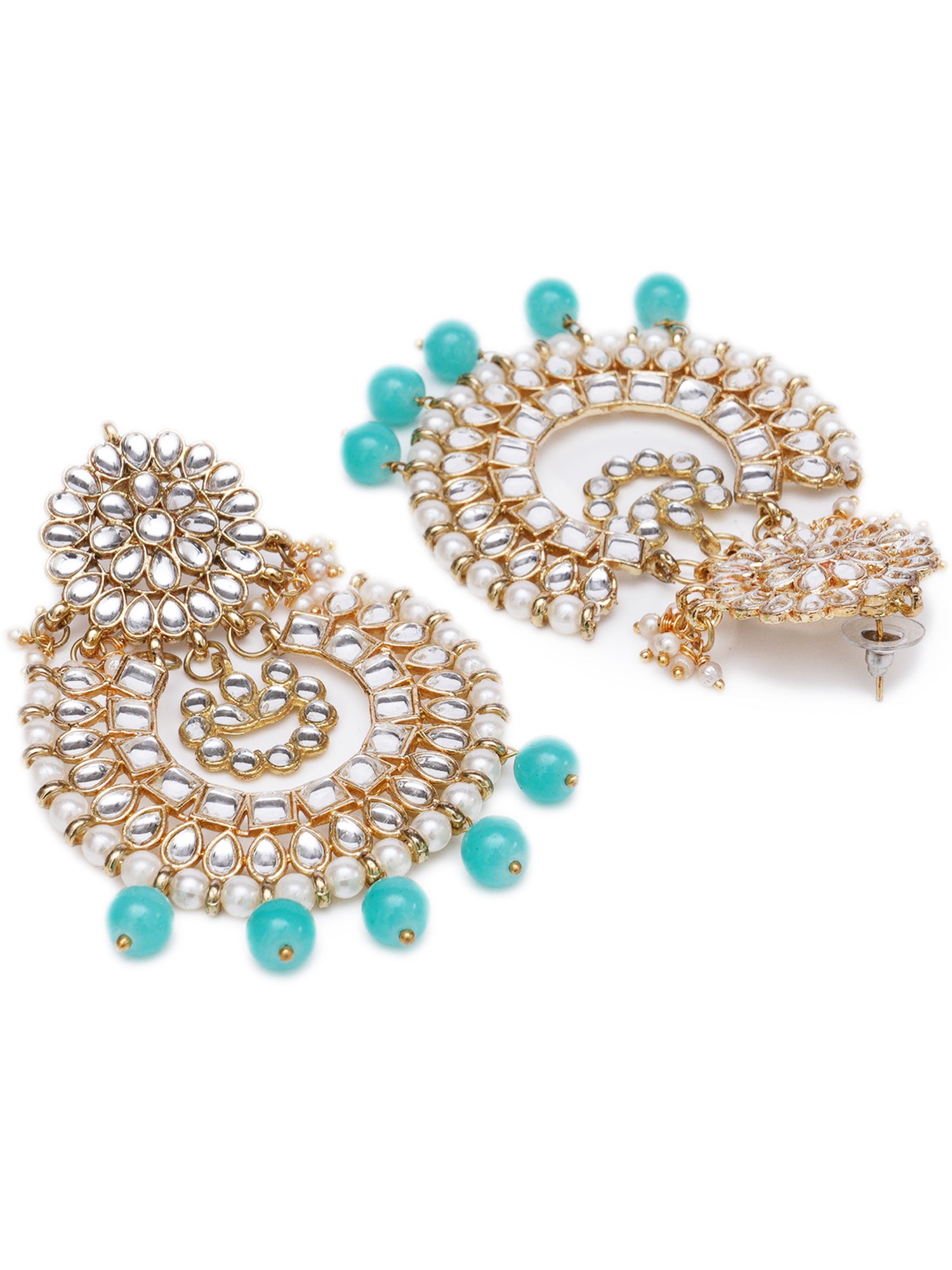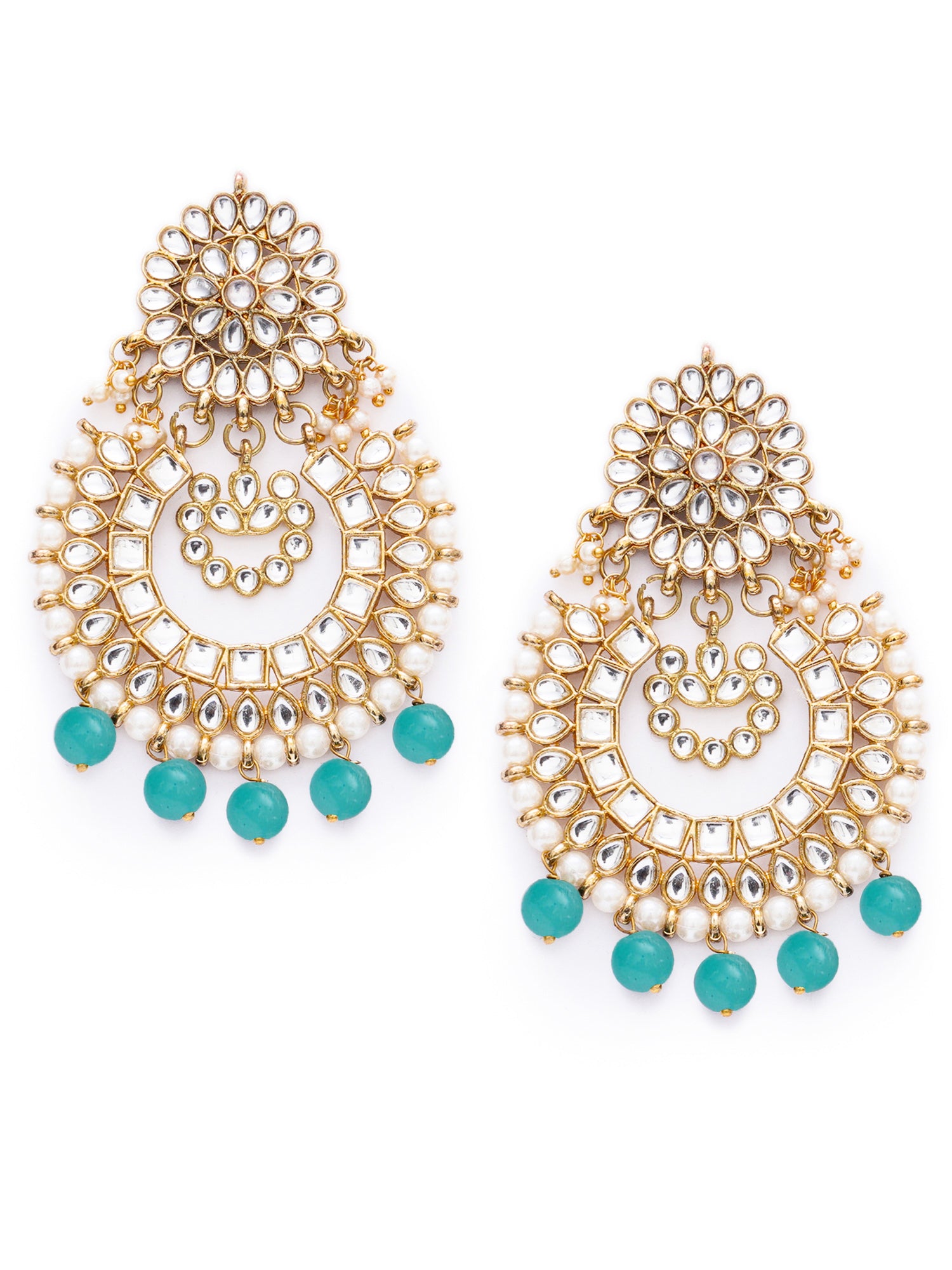 - Karatcart Gold Plated Light Blue Drop Kundan Chandbali Earrings for Women. Made of High-Quality Metal Alloy as per International Standards which makes it very skin-friendly.