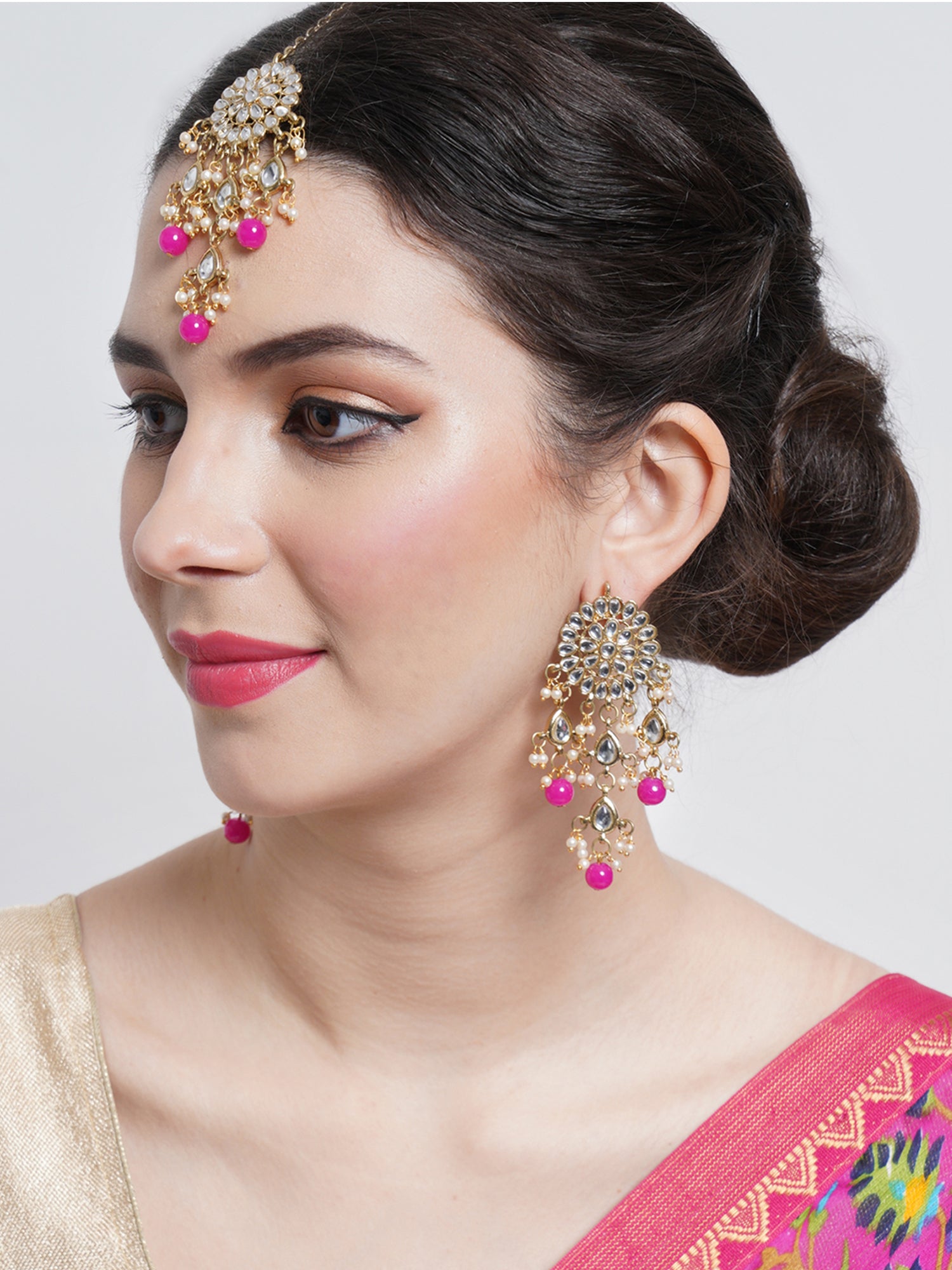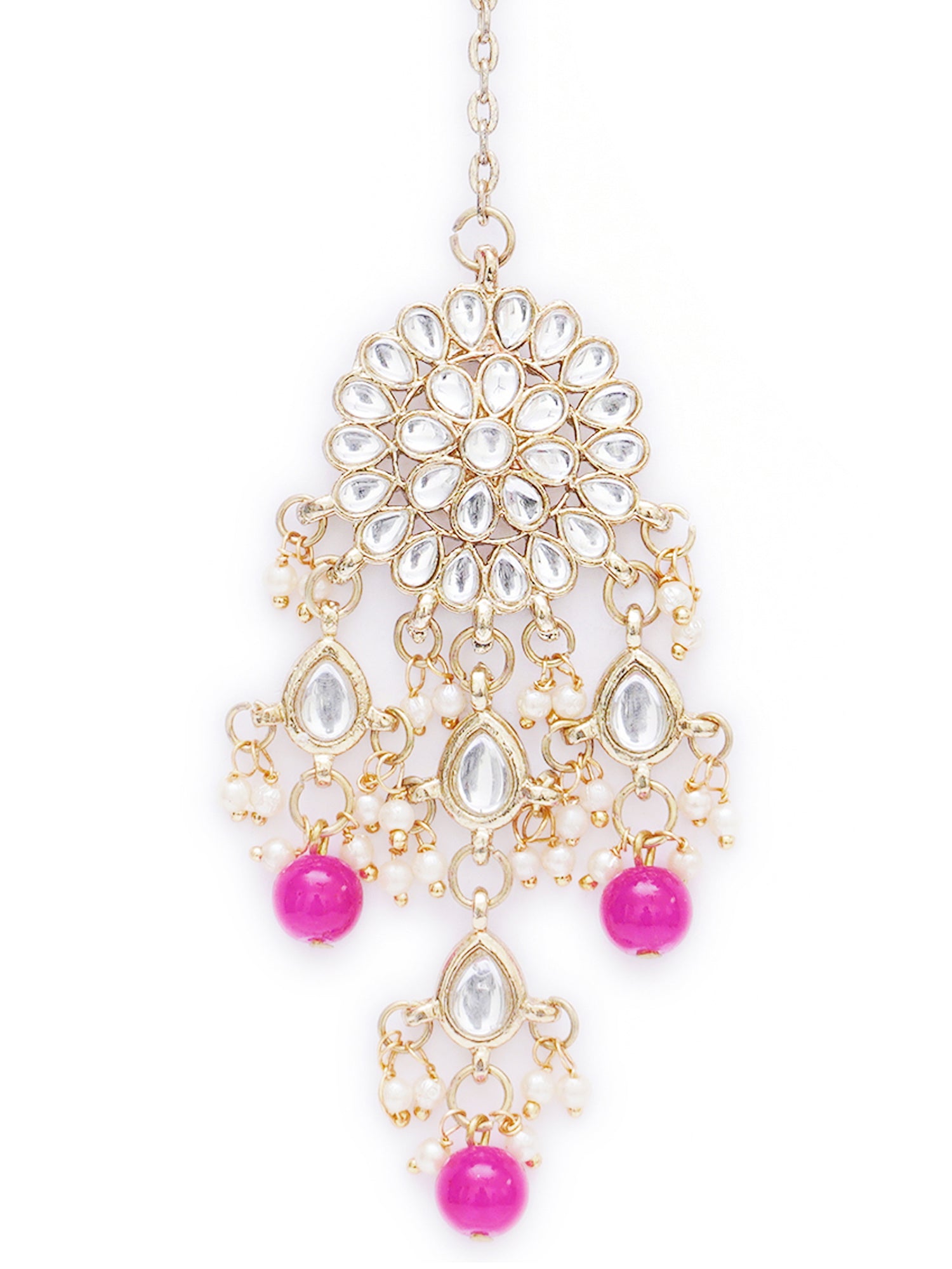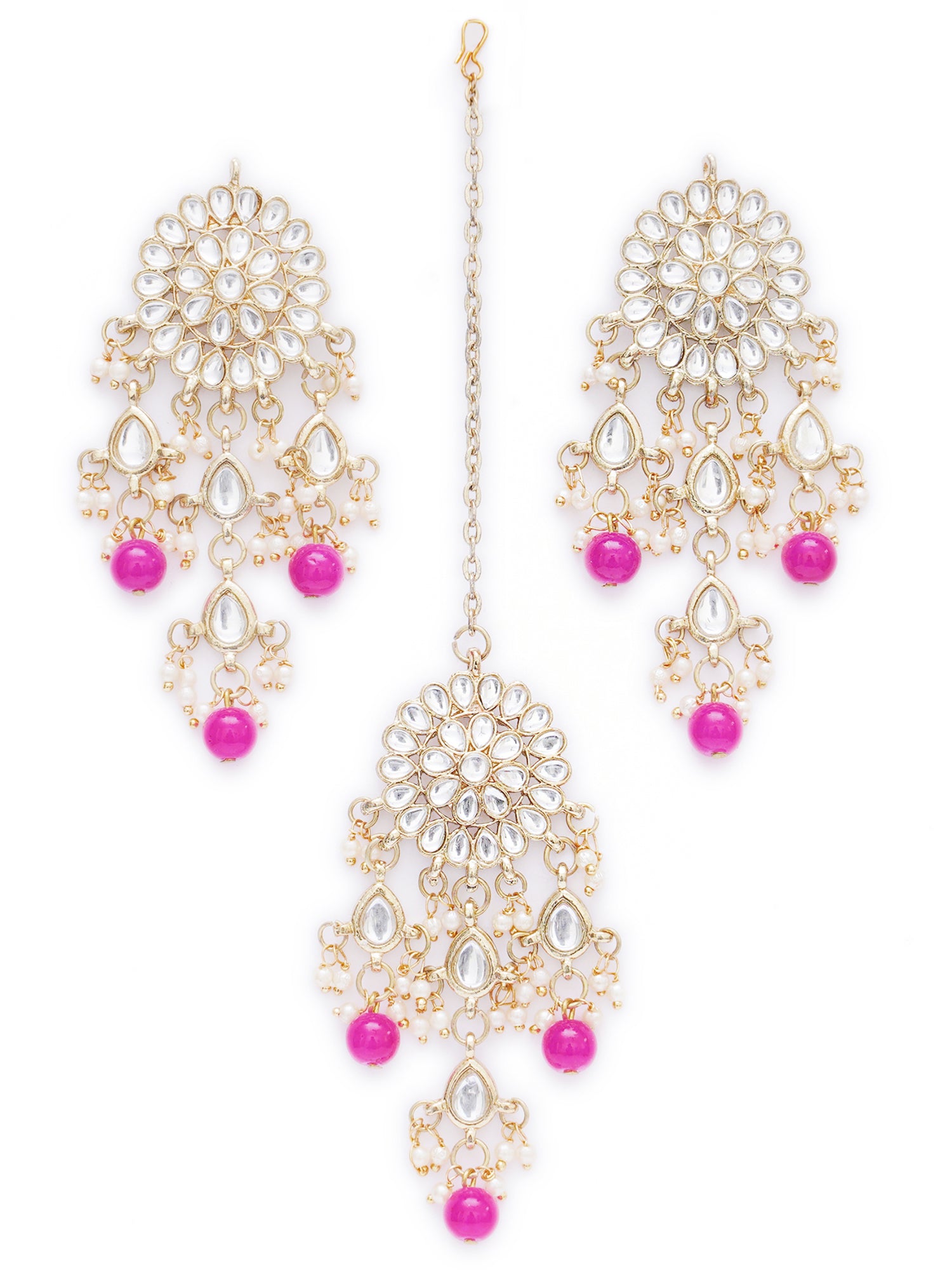 - Karatcart Gold Plated Embellished Pink Kundan Tassel Earrings with Maangtikka for Women. Made of High-Quality Metal Alloy as per International Standards which makes it very skin-friendly.