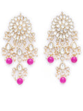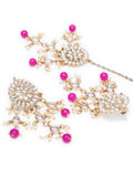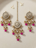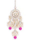 Gold Plated Embellished Pink Kundan Tassel Earrings with Maangtikka