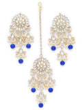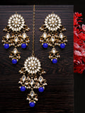 Gold Plated Embellished Blue Kundan Tassel Earrings with Maangtikka