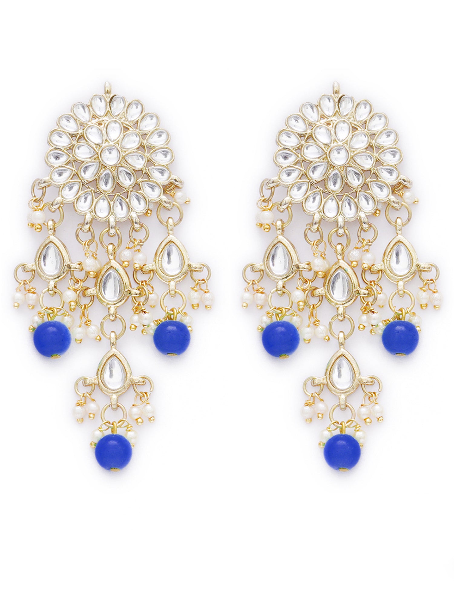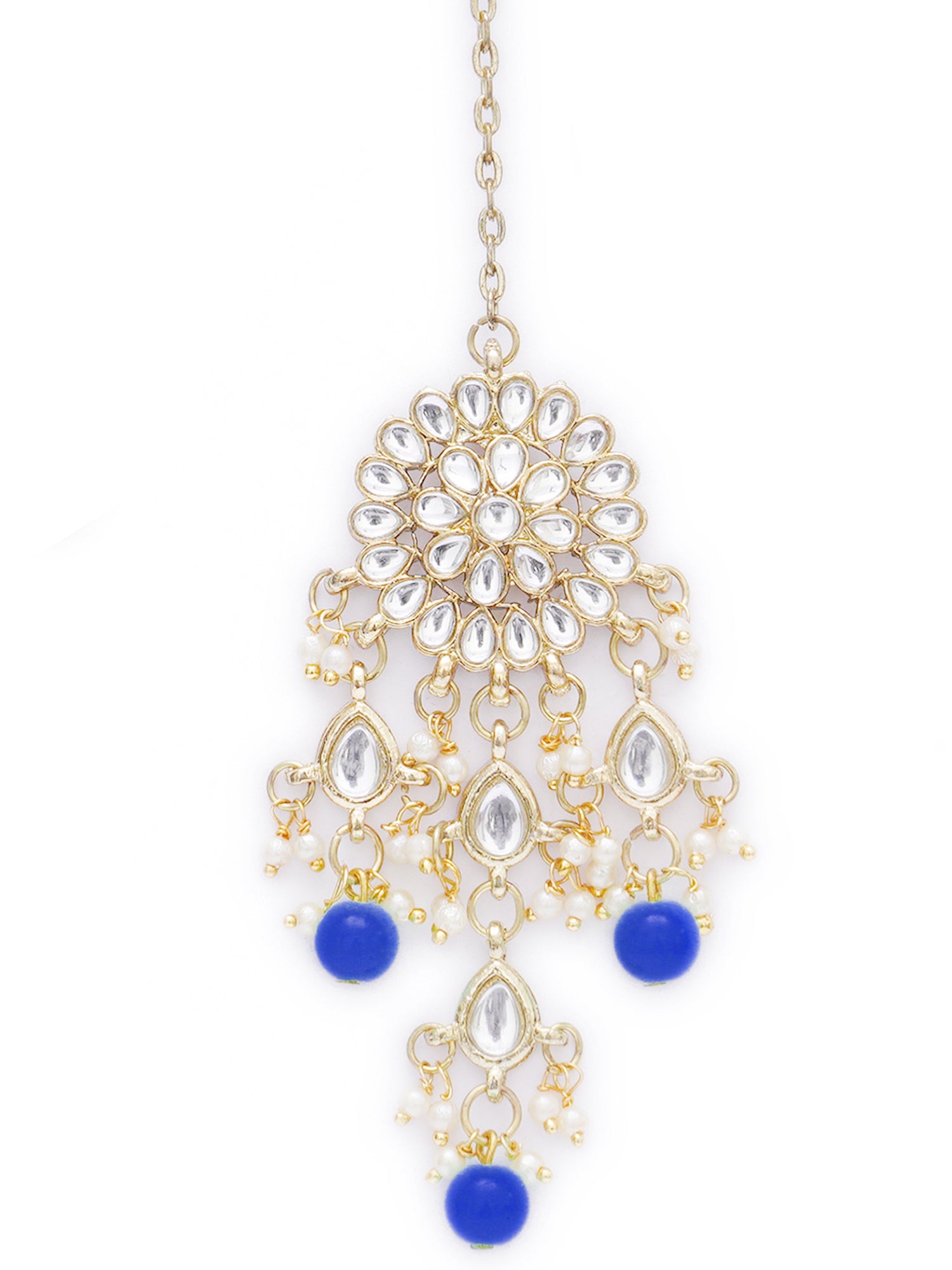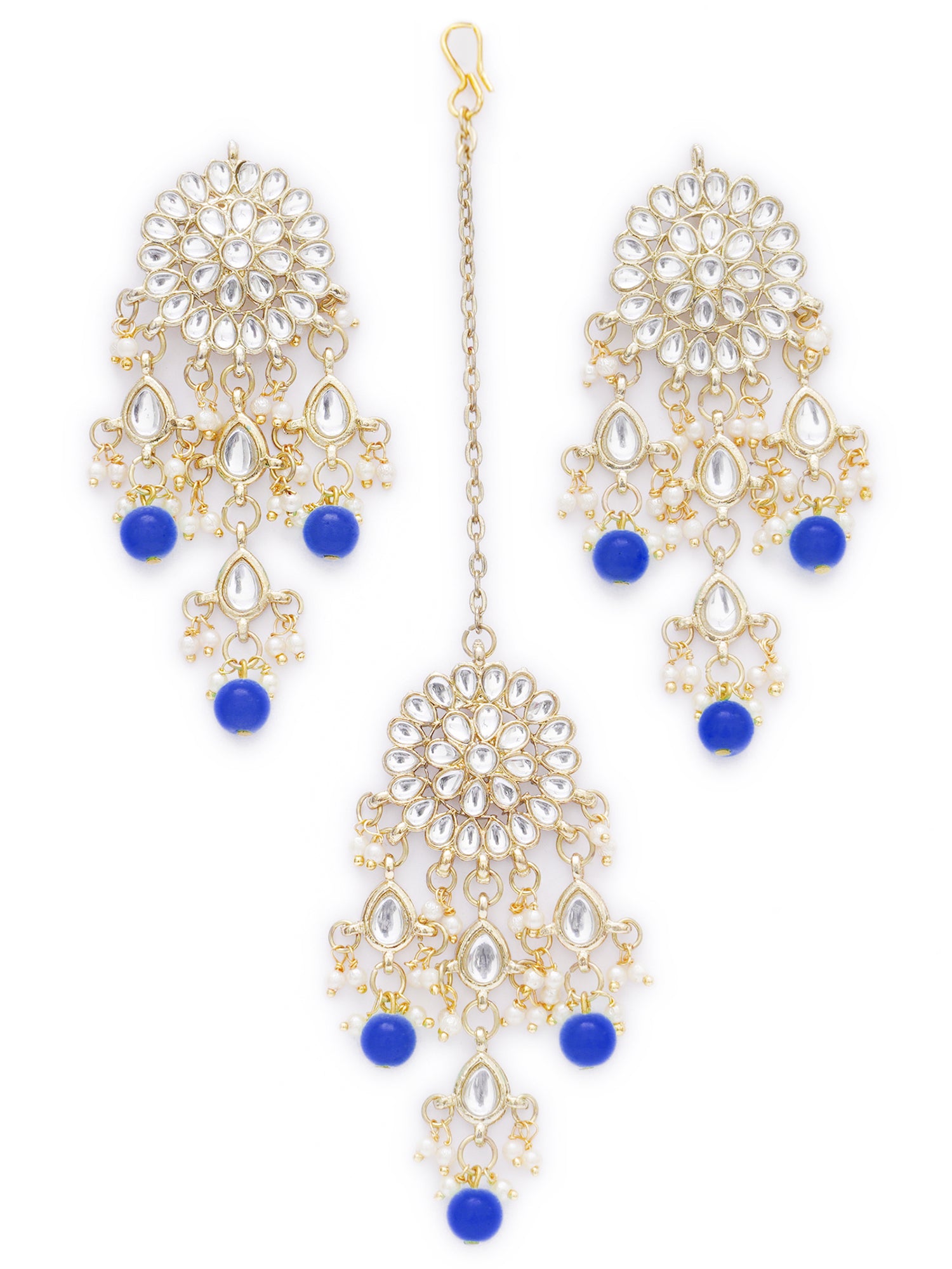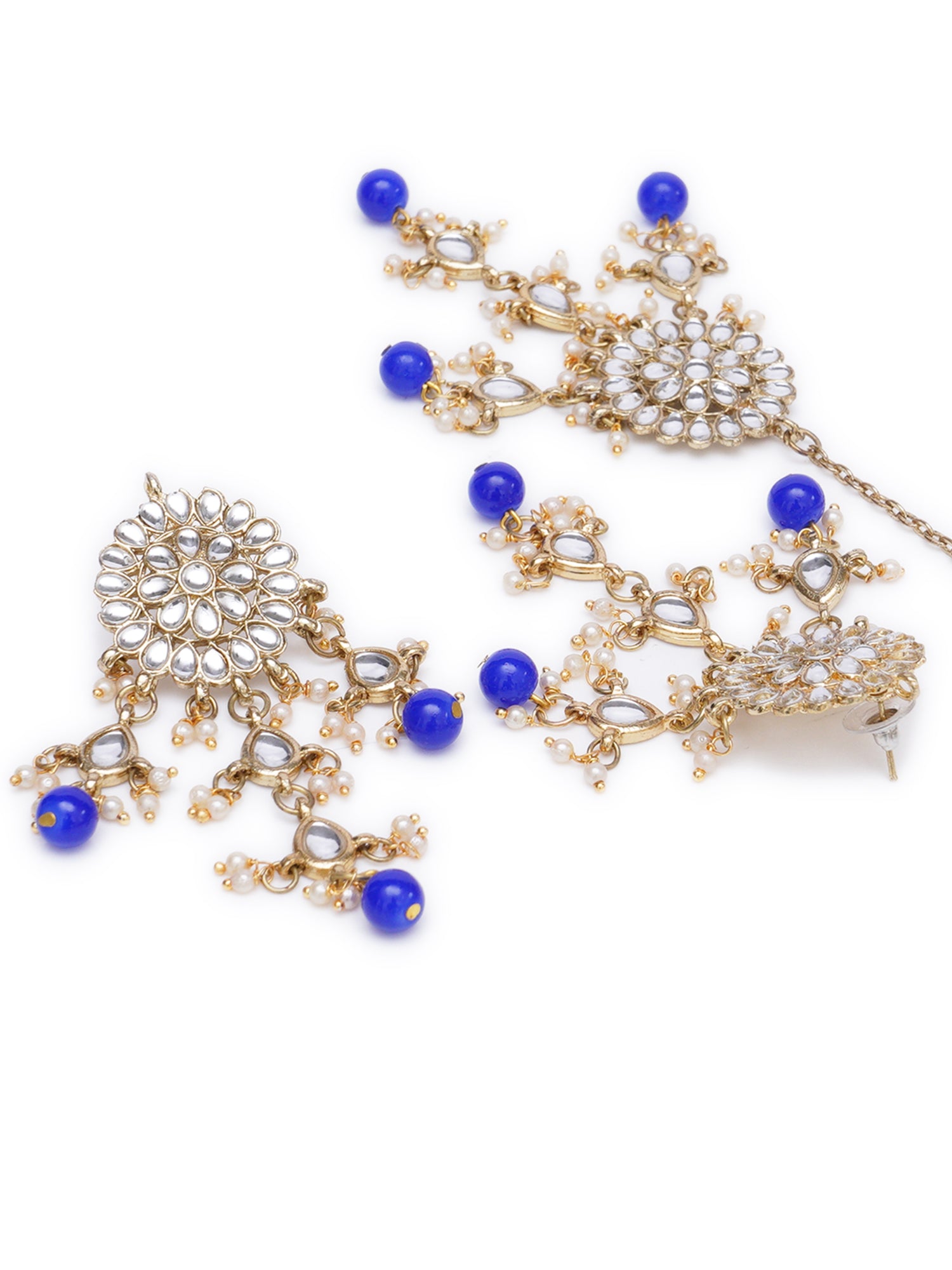 - Karatcart Gold Plated Embellished Blue Kundan Tassel Earrings with Maangtikka for Women. Made of High-Quality Metal Alloy as per International Standards which makes it very skin-friendly.