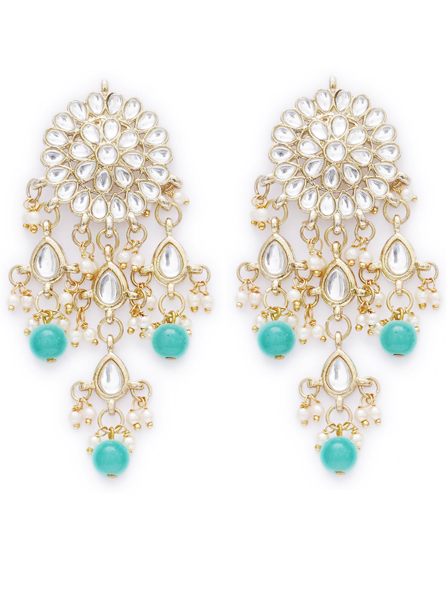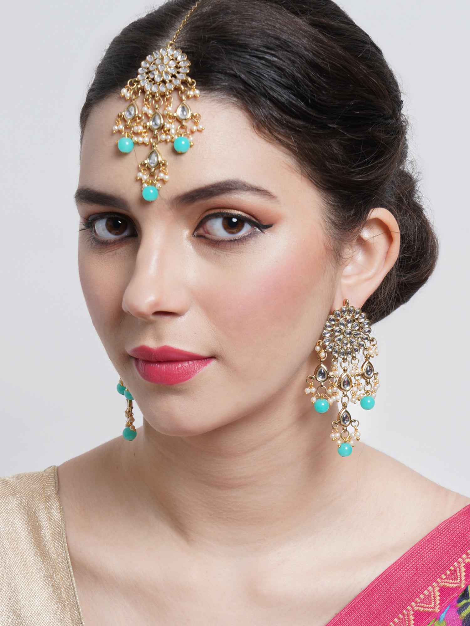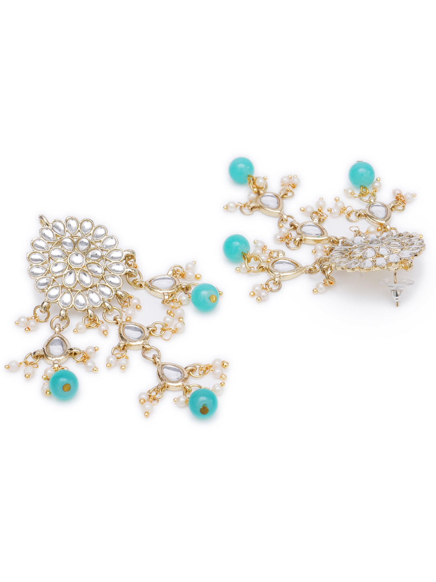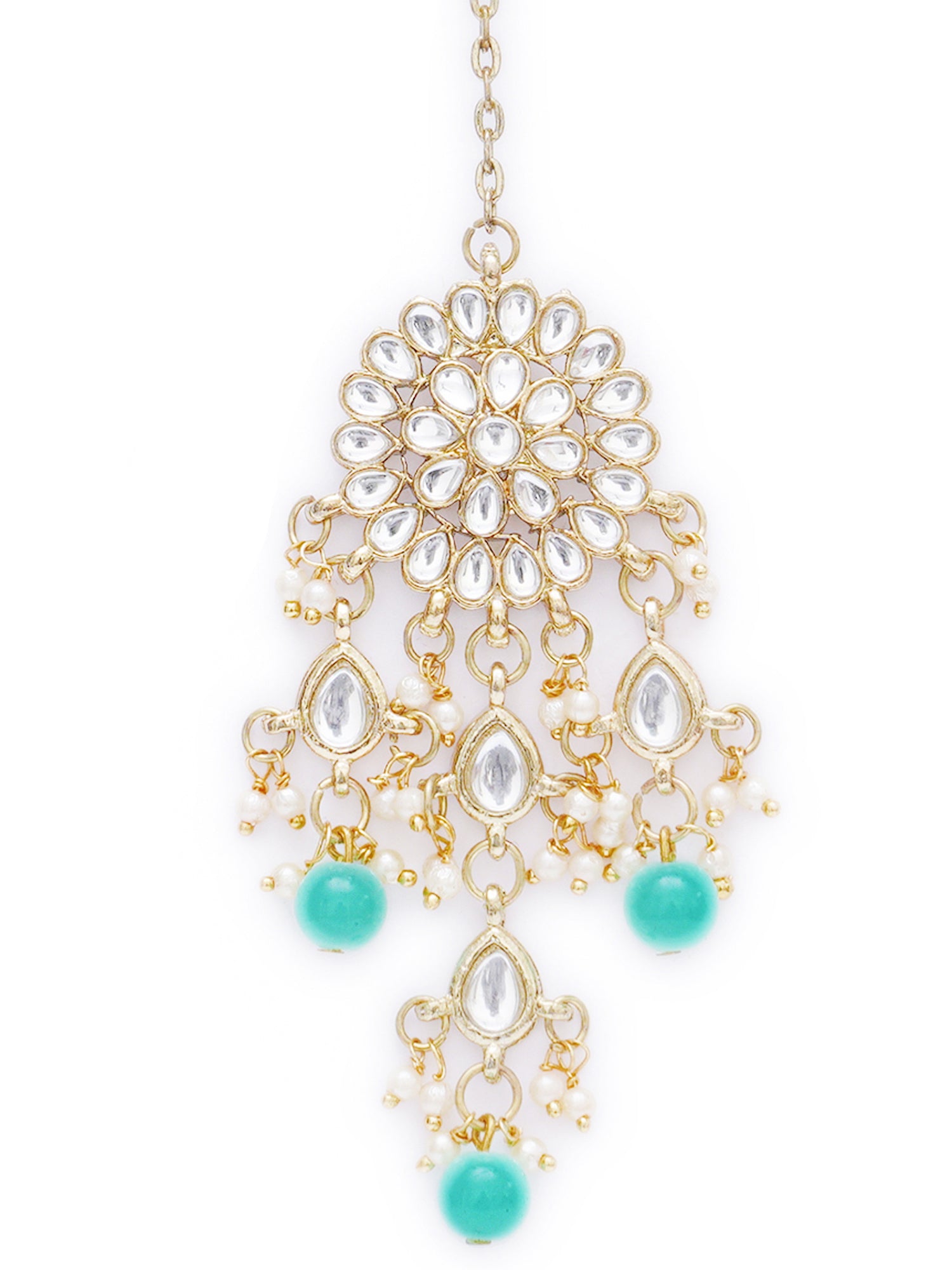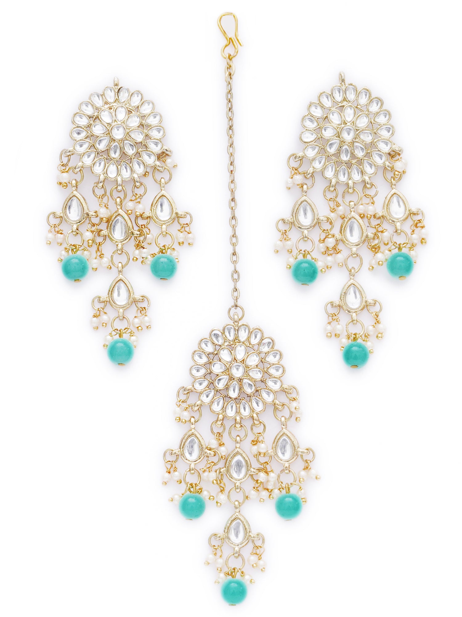 - Karatcart Gold Plated Embellished Light Blue Kundan Tassel Earrings with Maangtikka for Women. Made of High-Quality Metal Alloy as per International Standards which makes it very skin-friendly.
