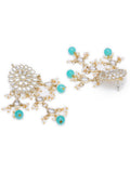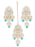 Gold Plated Embellished Light Blue Kundan Tassel Earrings with Maangtikka