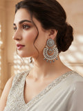 Grey Pearl Oxidised Silver Kundan Chandbali Earrings