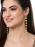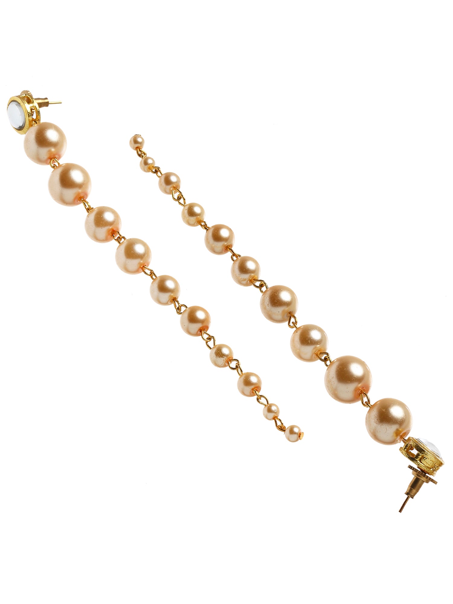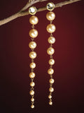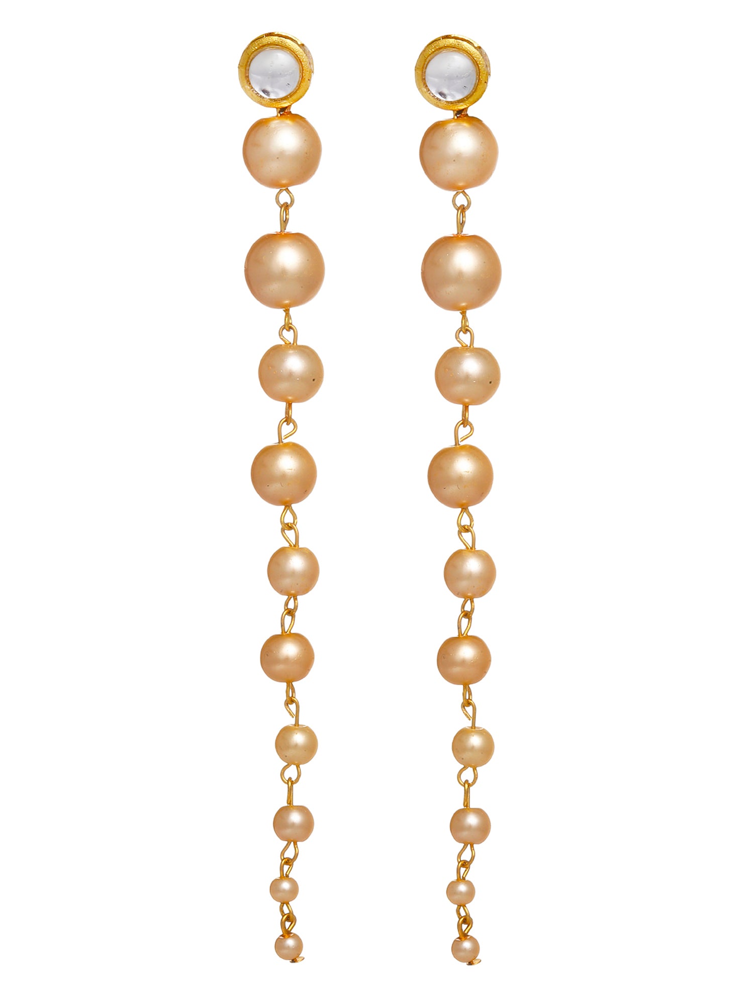 - Traditional Golden Pearl Long Drop Earrings. A delicate lightweight handcrafted pearl earrings. It is Embellished with Kundan and Pearl for High Durability. Intricate high polish creates glamorous reflection and adds a luxurious look. Perfect for Weddings, Parties, Festivals and Traditional Occasions. Best when paired with any Western, Indian or any Indo-western outfit.