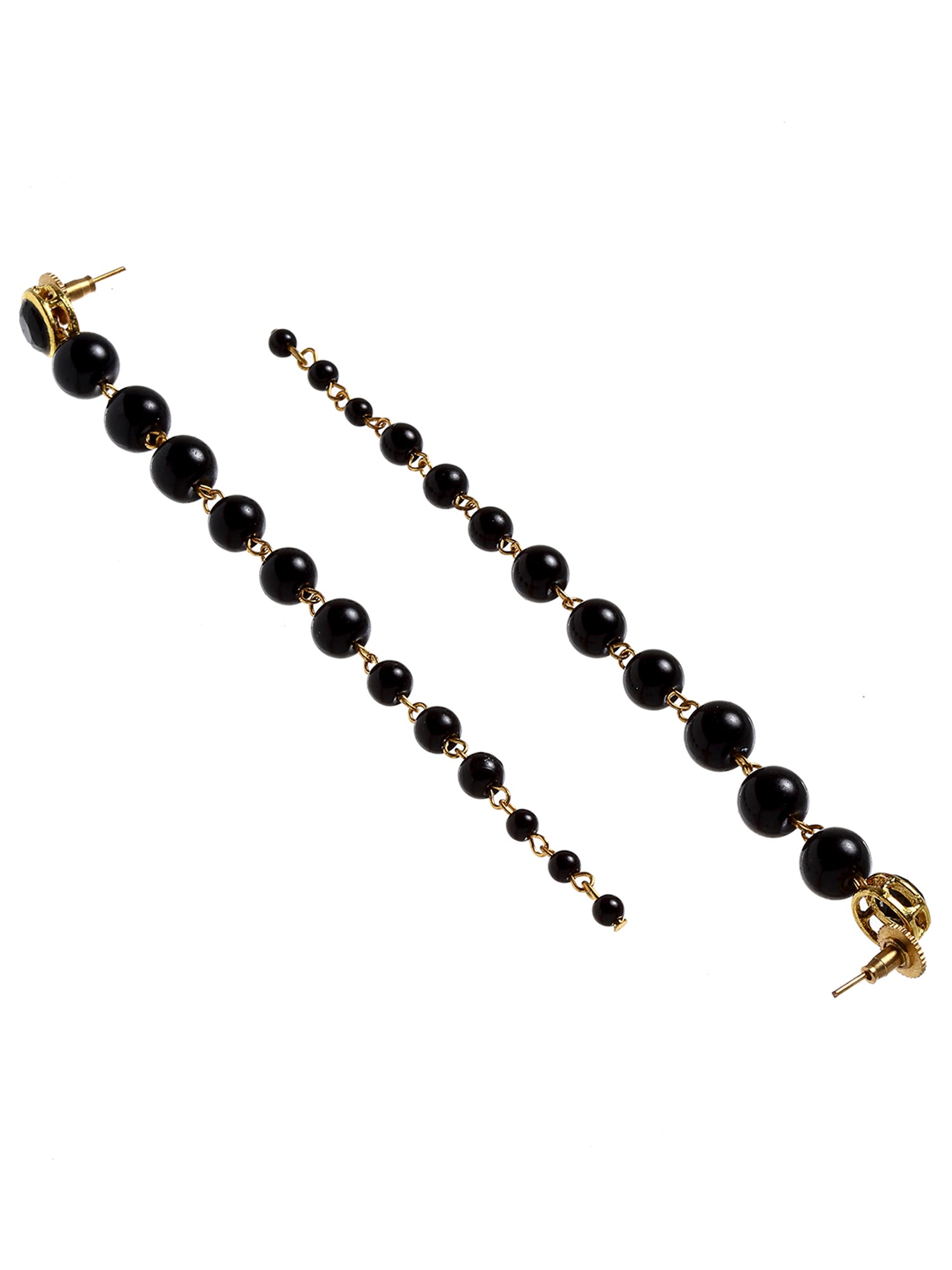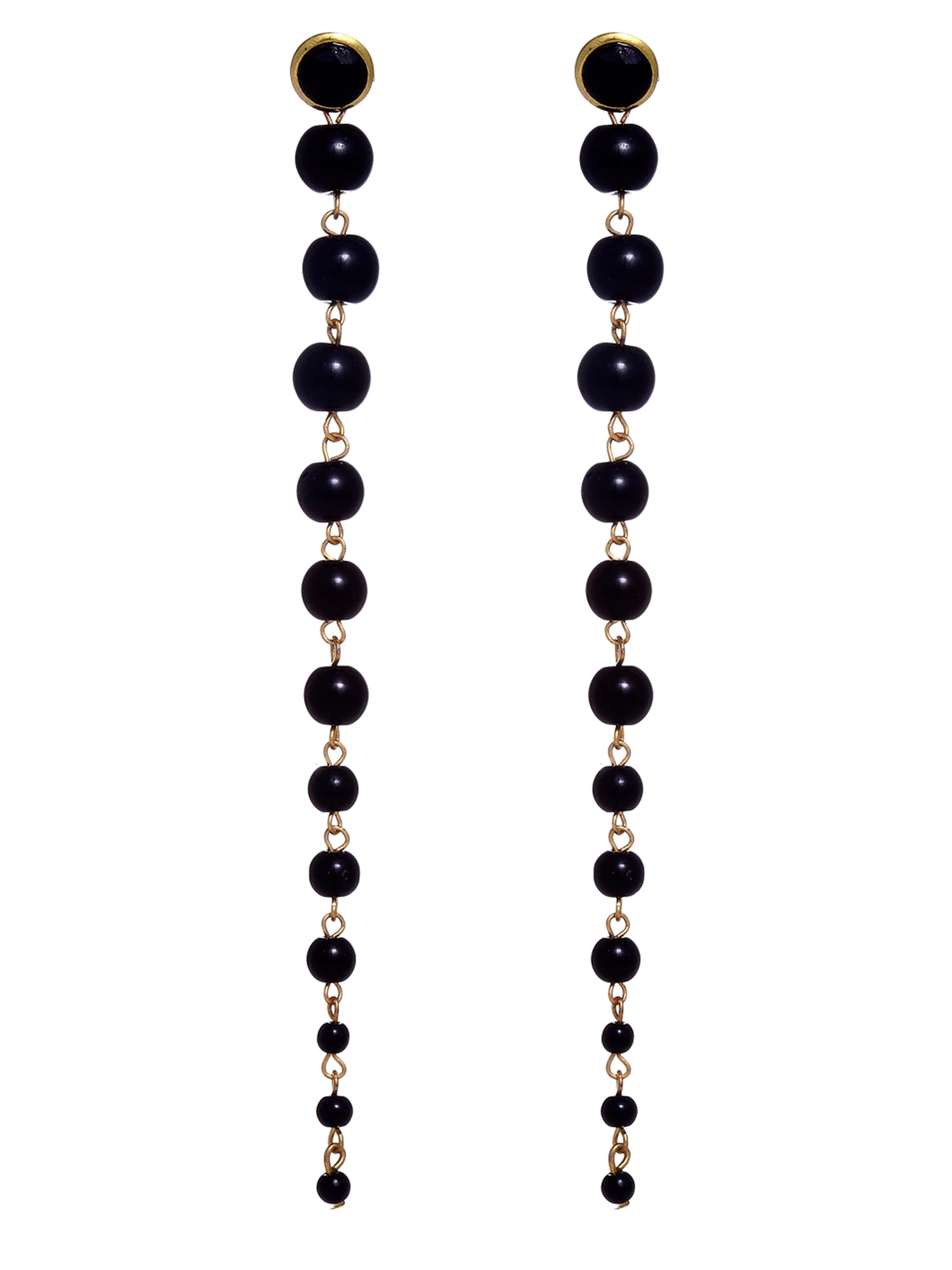 - Traditional Black Beads Long Drop Earrings. A delicate lightweight handcrafted pearl earrings. It is Embellished with Kundan and Pearl for High Durability. Intricate high polish creates glamorous reflection and adds a luxurious look. Perfect for Weddings, Parties, Festivals and Traditional Occasions. Best when paired with any Western, Indian or any Indo-western outfit.
