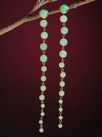 Light Green Beads Long Dangler Earrings