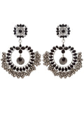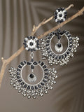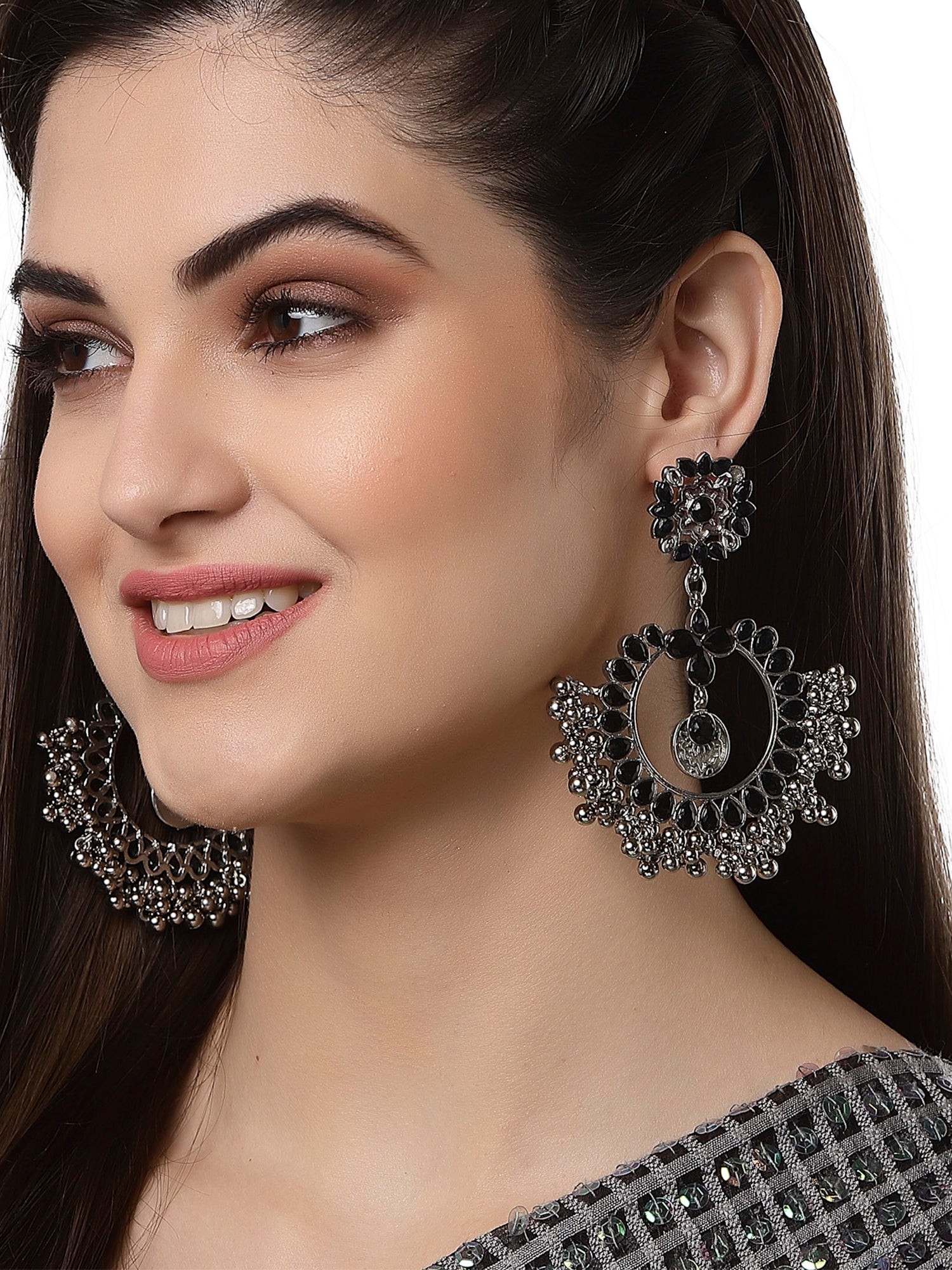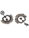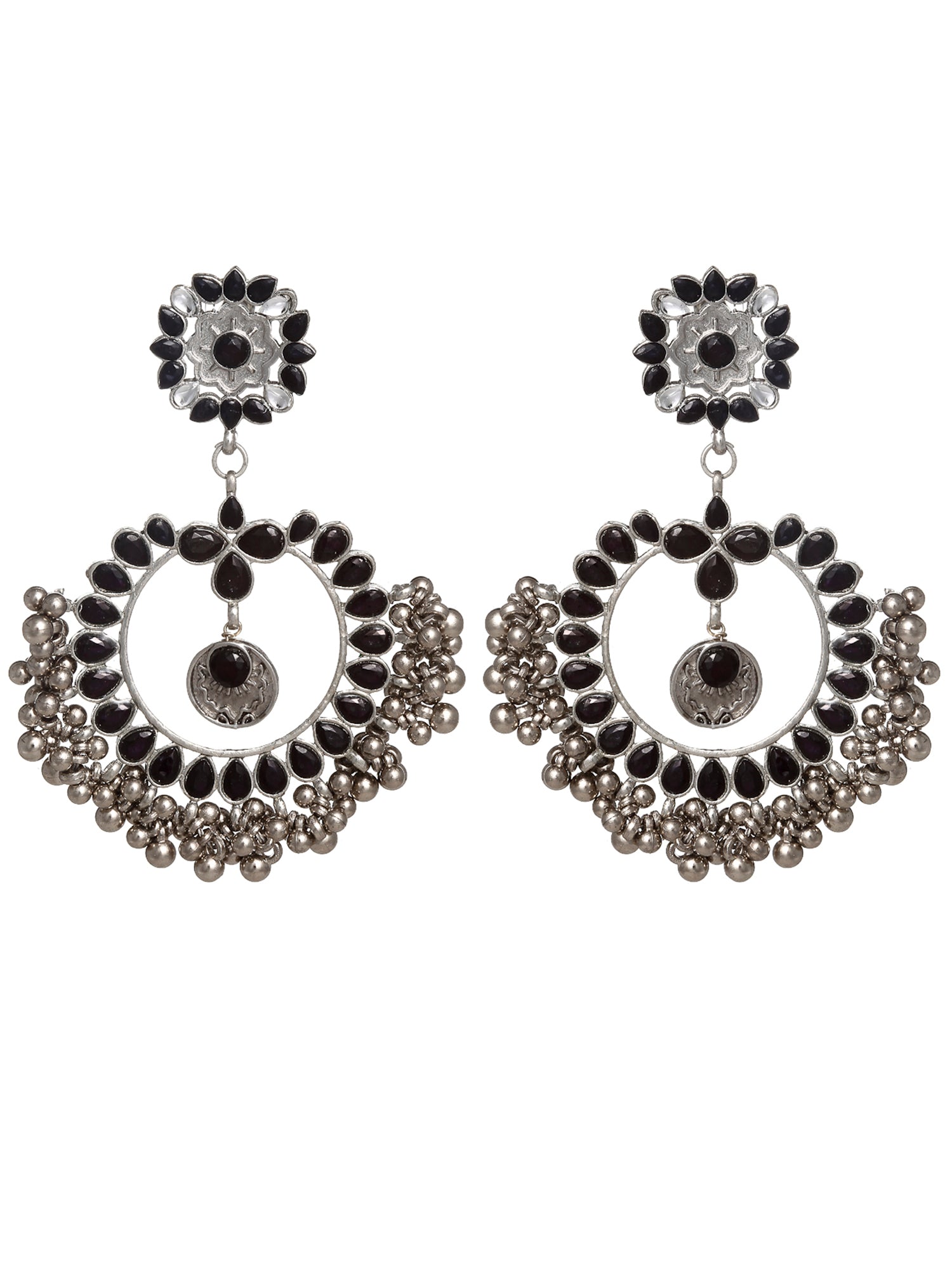 Oxidised Silver Black Kundan Studded Chandbali Earrings