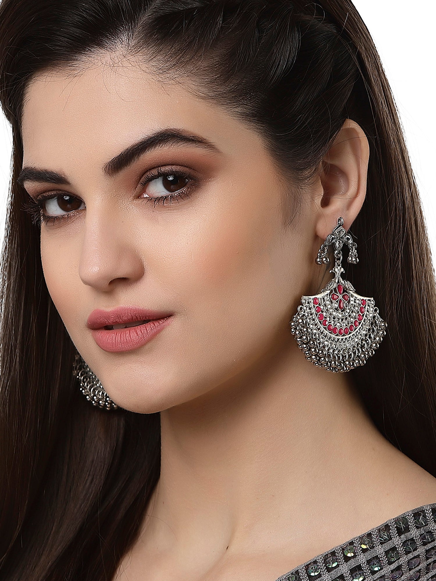 - Karatcart Peacock Shaped Oxidised Silver Ruby Red Kundan Chandbali Earrings for Women. It is made with high-quality Kundan Stones which makes them very skin-friendly. Perfect for Weddings, Parties, Festivals, and Traditional Occasions.