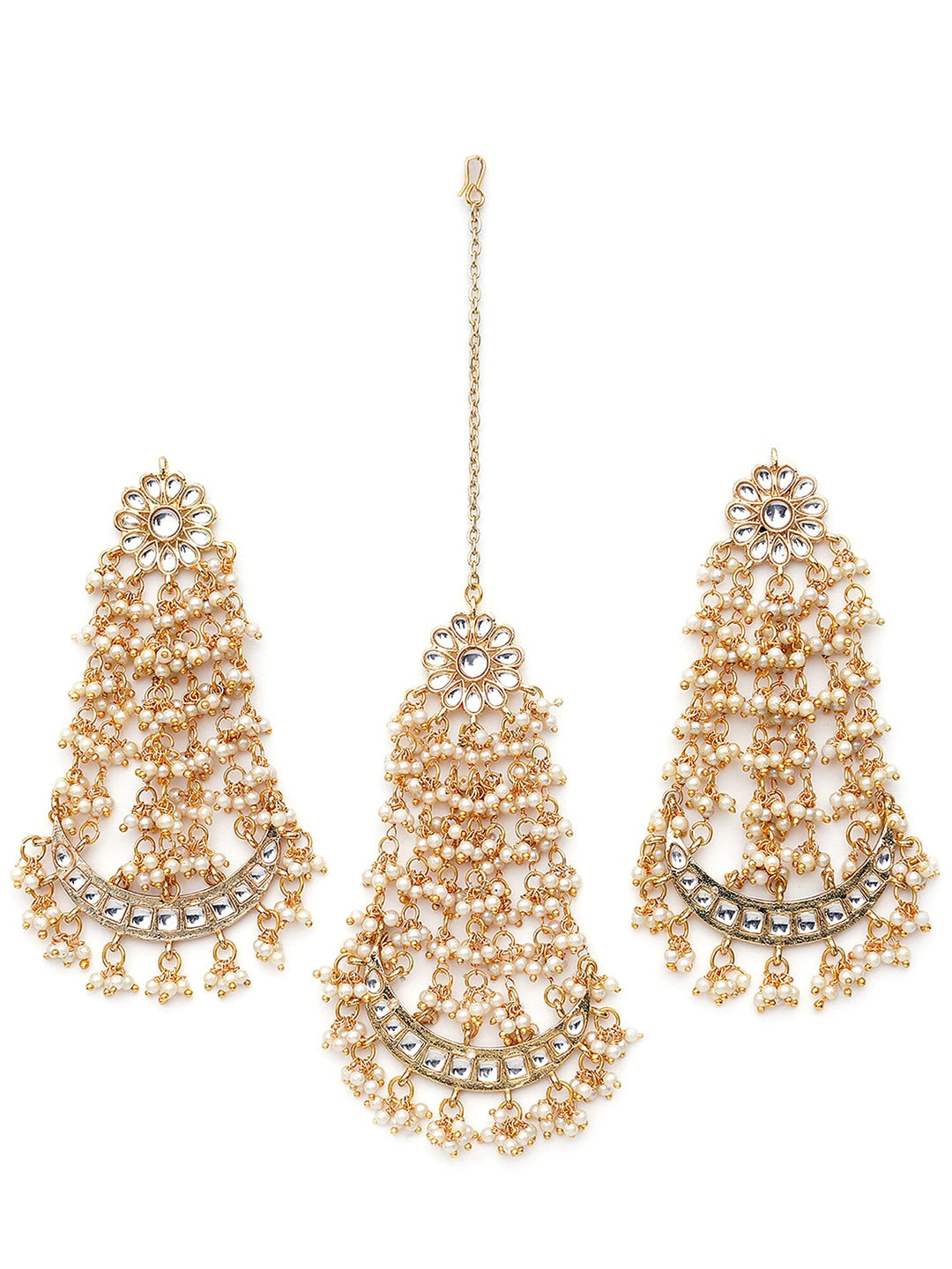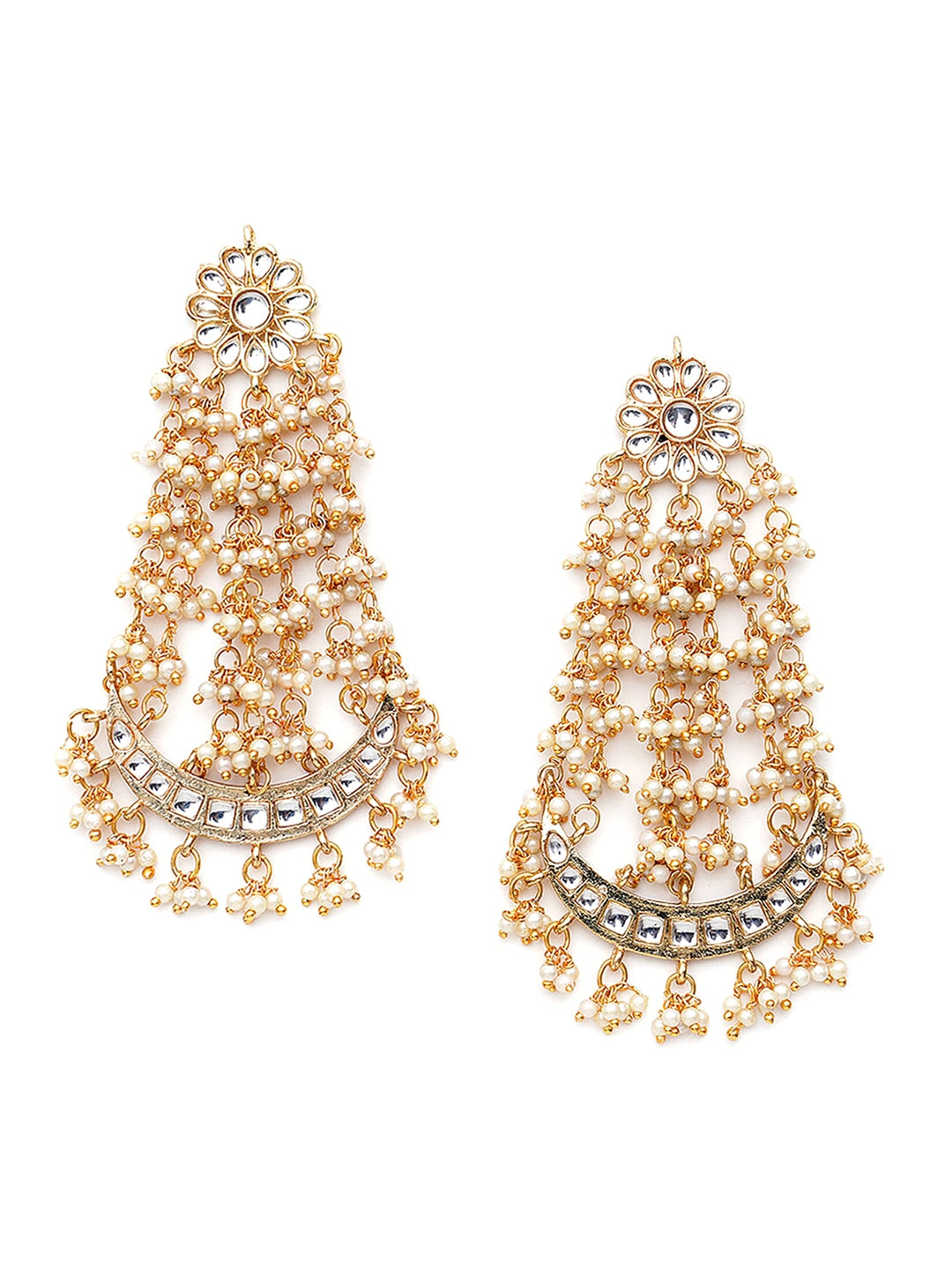 Karatcart Gold Plated Kundan and Pearl Studded Earrings with Passa
