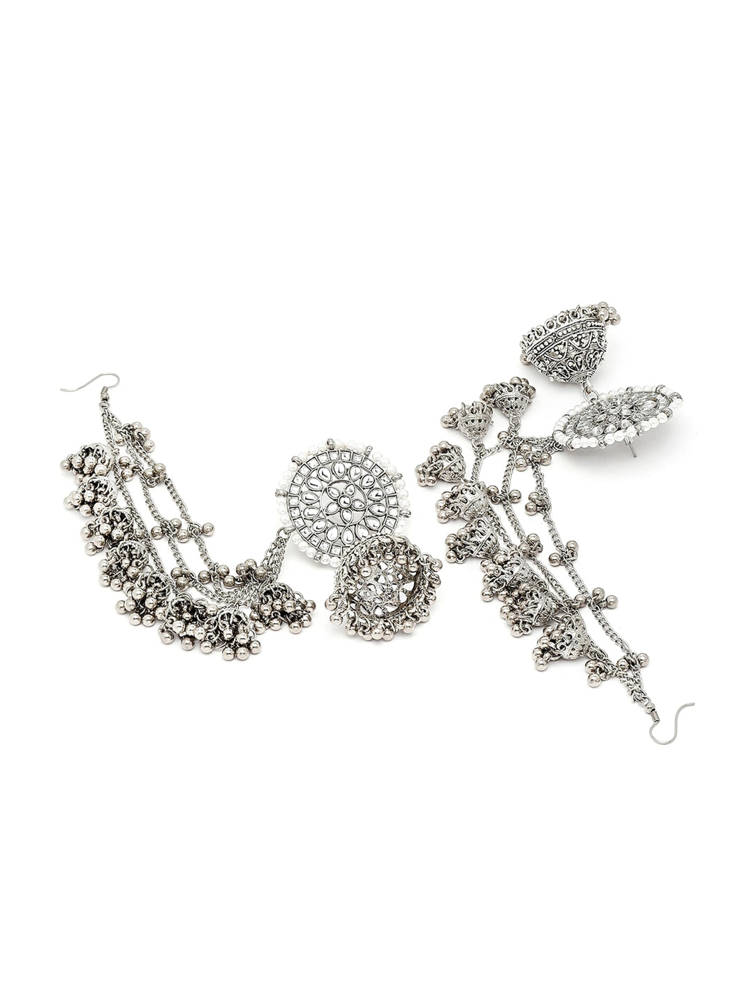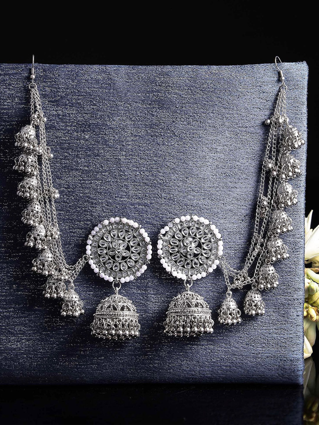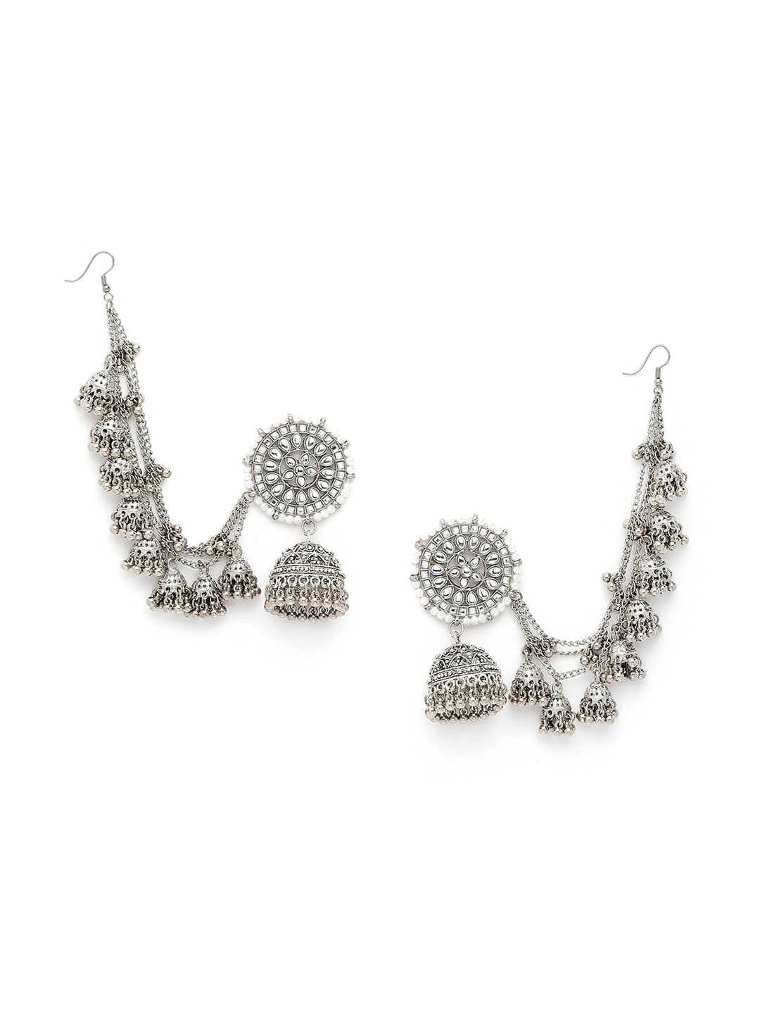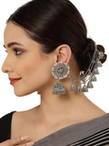 Silver-Toned Floral Jhumkas Earrings