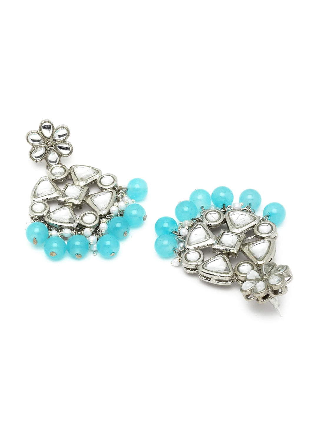 Silver-Plated Blue Beads Kundan Oxidised Jewellery Set