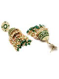 Karatcart Green Stone and Multicolor Crystals Jhumki Earrings for Women
