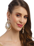 Karatcart Gold Plated Pearl and Pink Crystal Studded Kundan Chandbali Earrings for Women