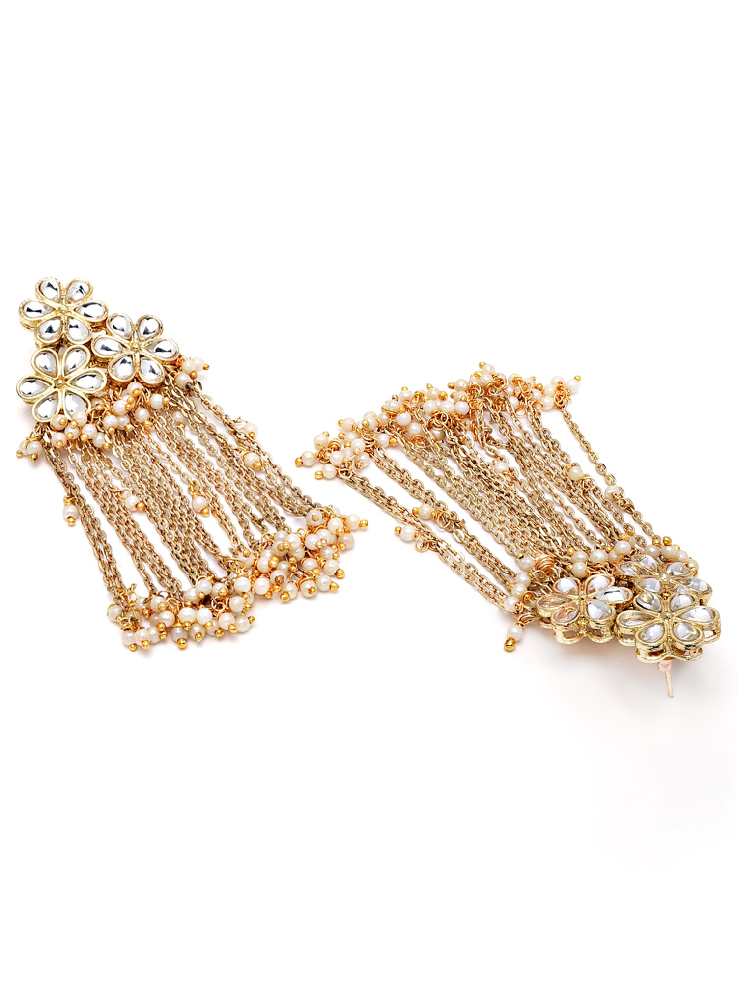 Karatcart Gold Plated White Pearl Kundan Tassel Earrings for Women