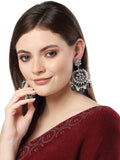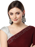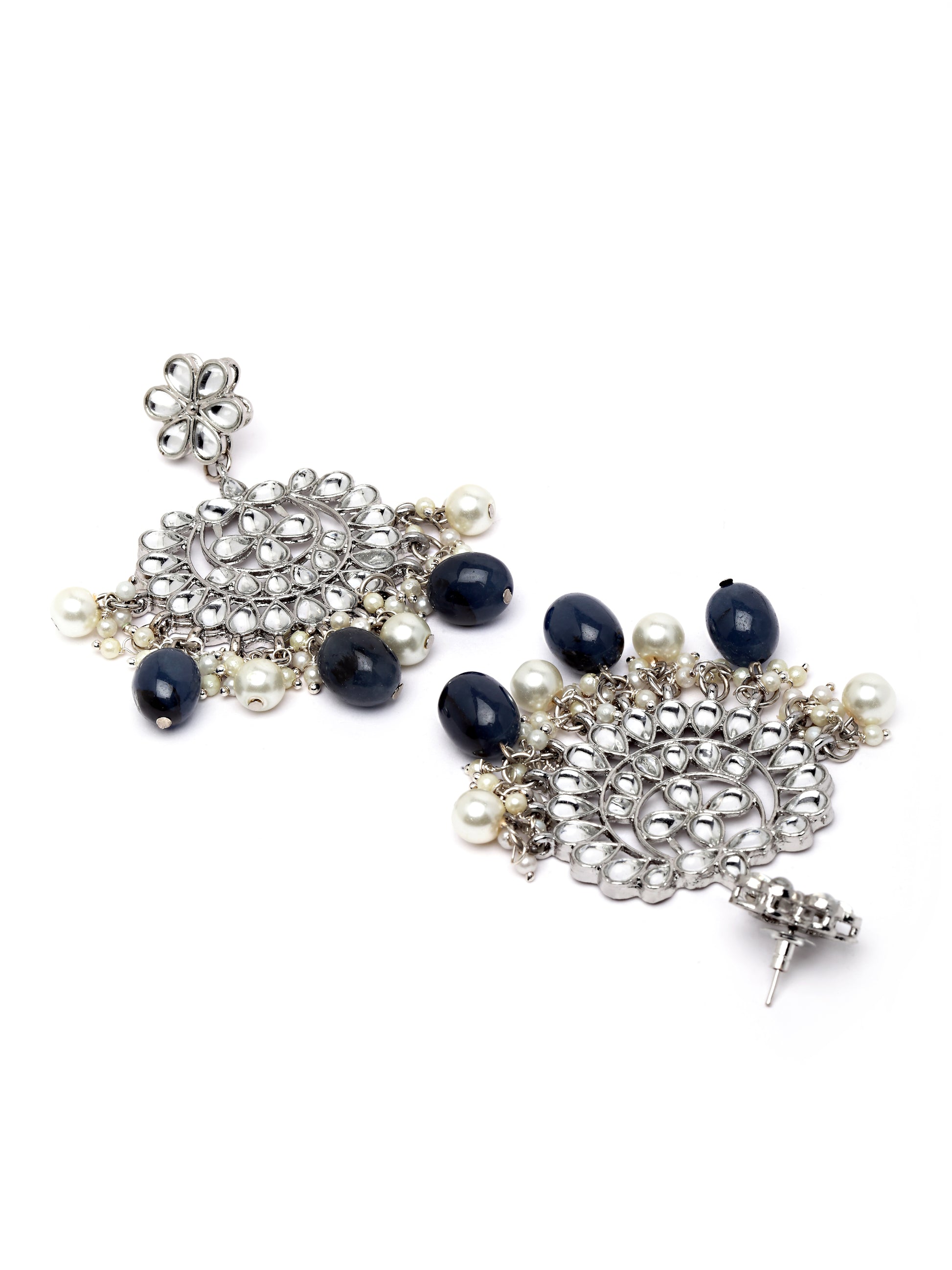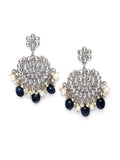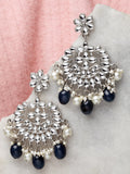 Karatcart Oxidised Silver Blue Tumble Kundan Chandbali Earrings for Women