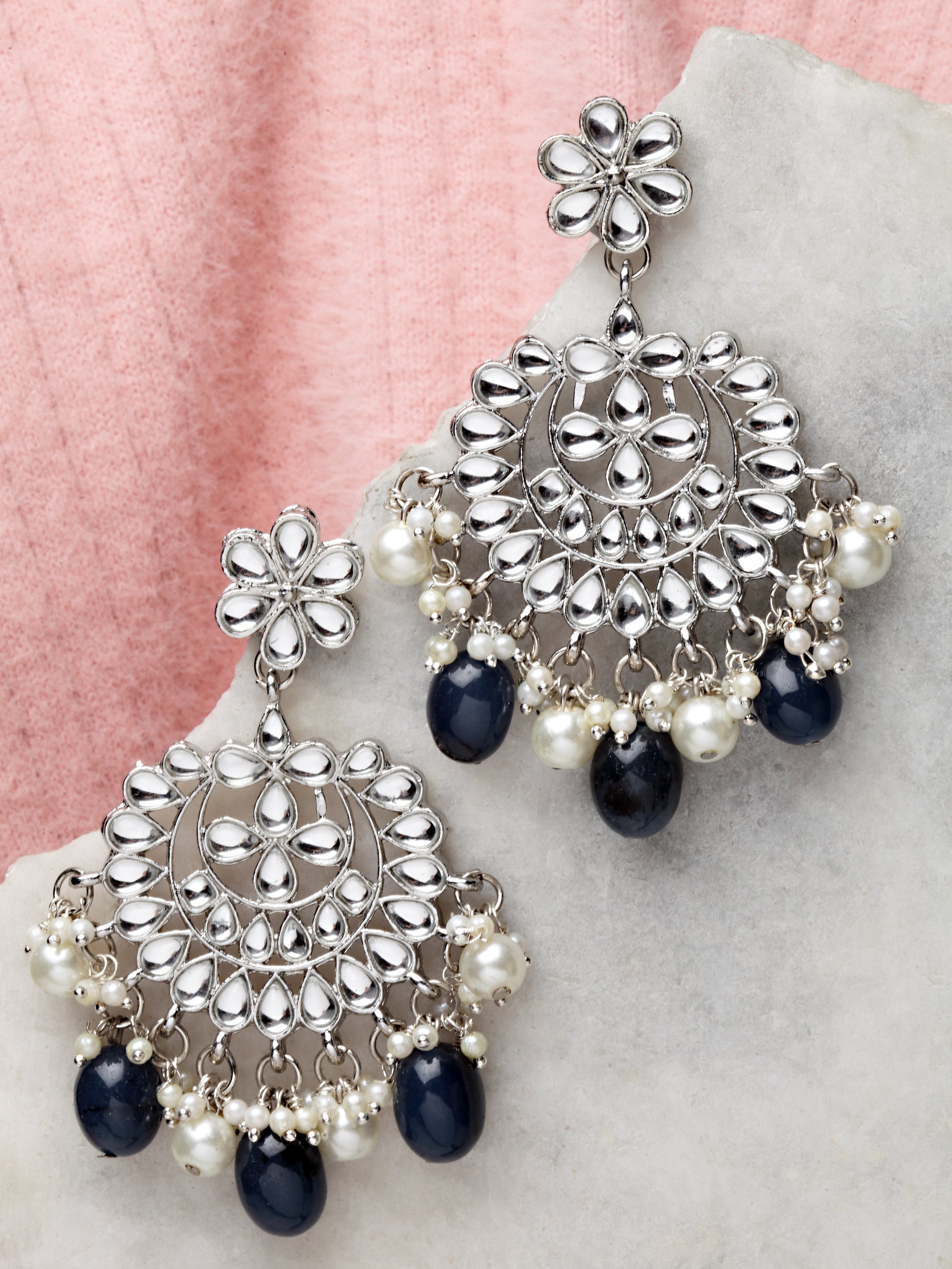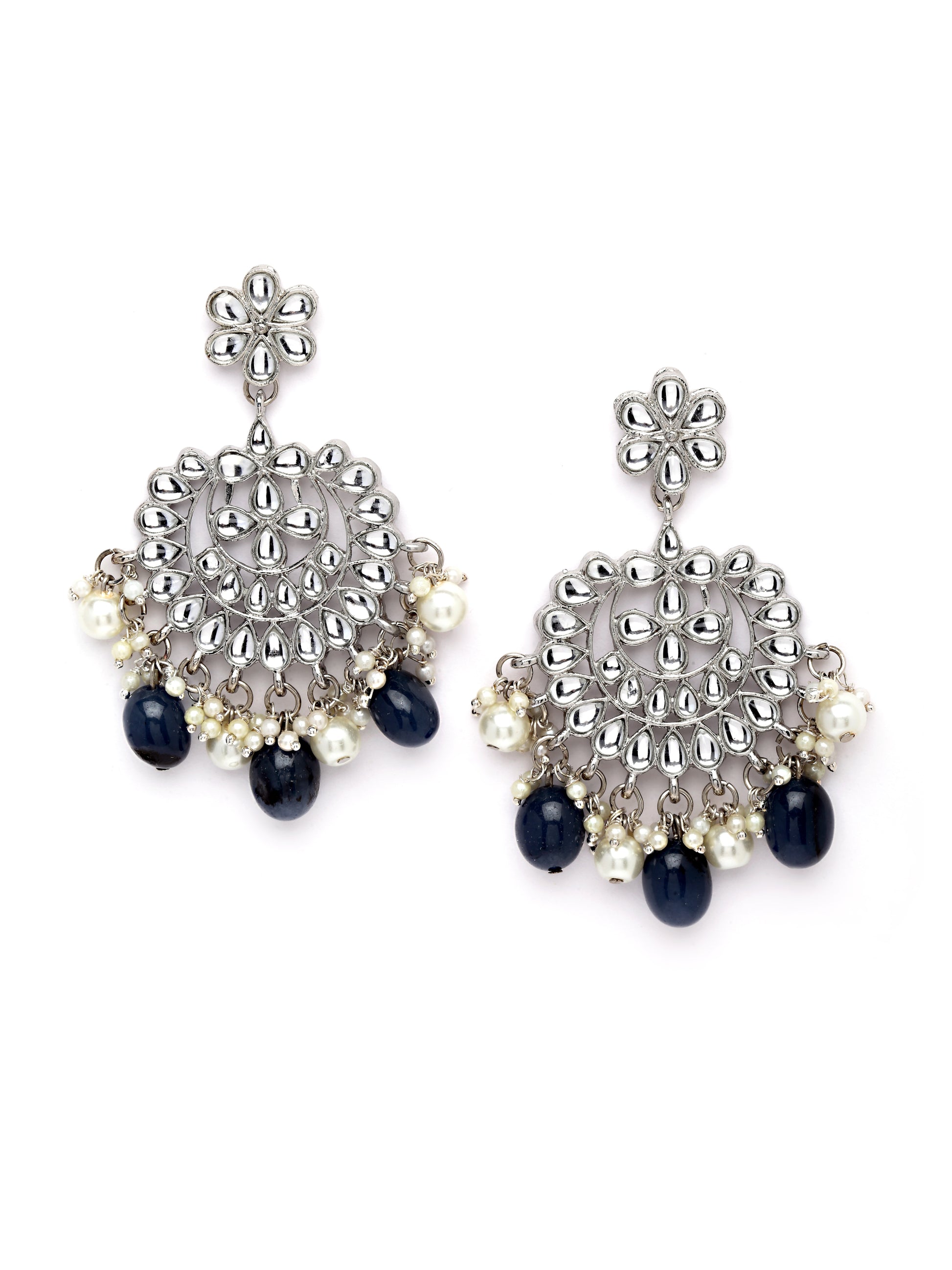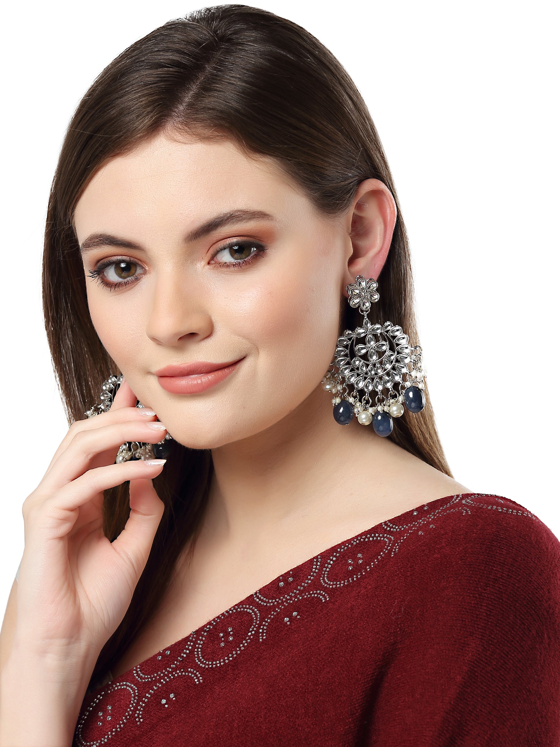 - Karatcart Oxidised Silver Blue Tumble Kundan Chandbali Earrings for Women .It is made with high-quality Kundan Stones which makes them very skin-friendly. Perfect for Weddings, Parties, Festivals, and Traditional Occasions. Gracefully pair Saree, Kurti, or any Indo-western outfit to enhance your look. These are made from toxic-free materials which are Anti-Allergic and Safe for the skin.