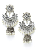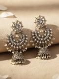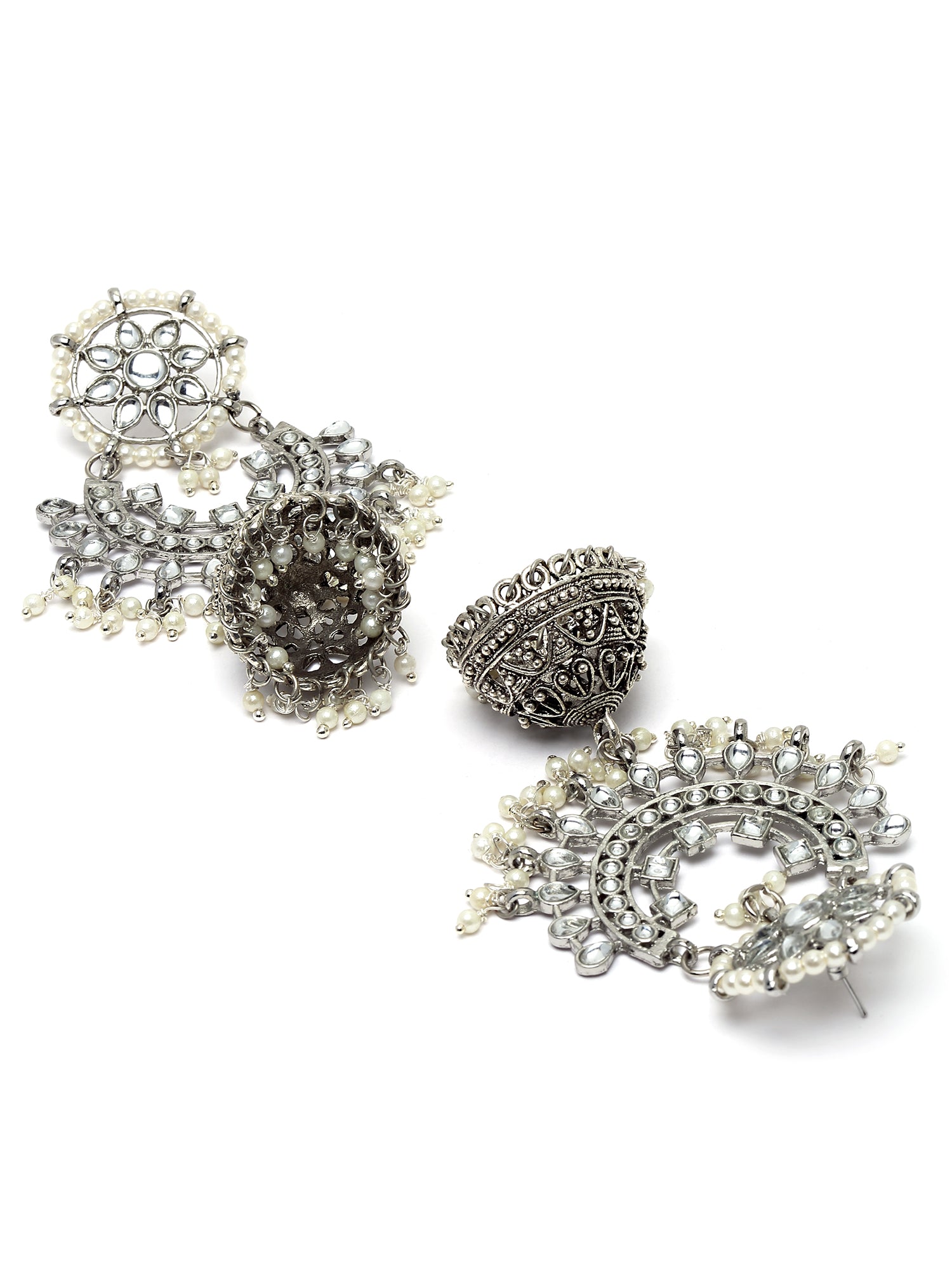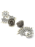 Karatcart Oxidised Silver Handcrafted Kundan Jhumki Earrings for Women