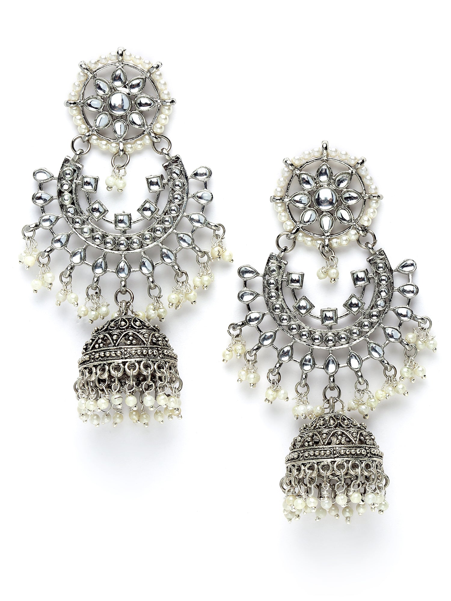 - This is a Silver Earrings by Brand Karatcart which has Kundan stones.This is Oxidised Silver. We at KARATCART understand your desire to look the best on any day & we thrive in making any day an occasion. Every individual at Karatcart carries a passion for jewellery and it reflects in our beautiful designs as well as in our breathtaking craftsmanship. We create unique jewellery so you can make heads turn..