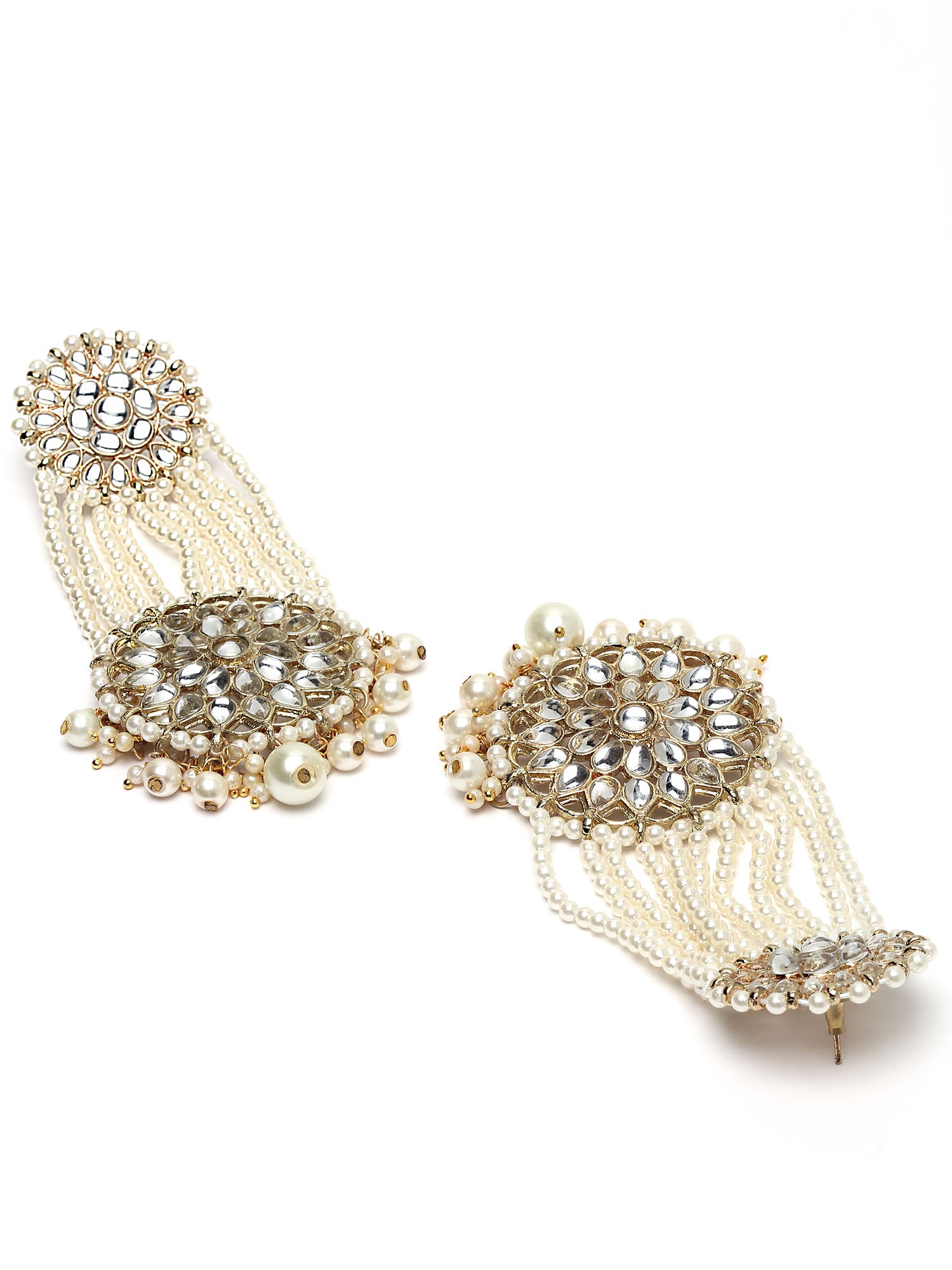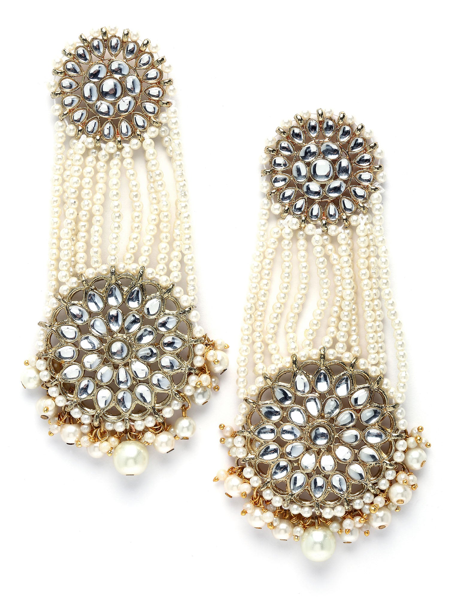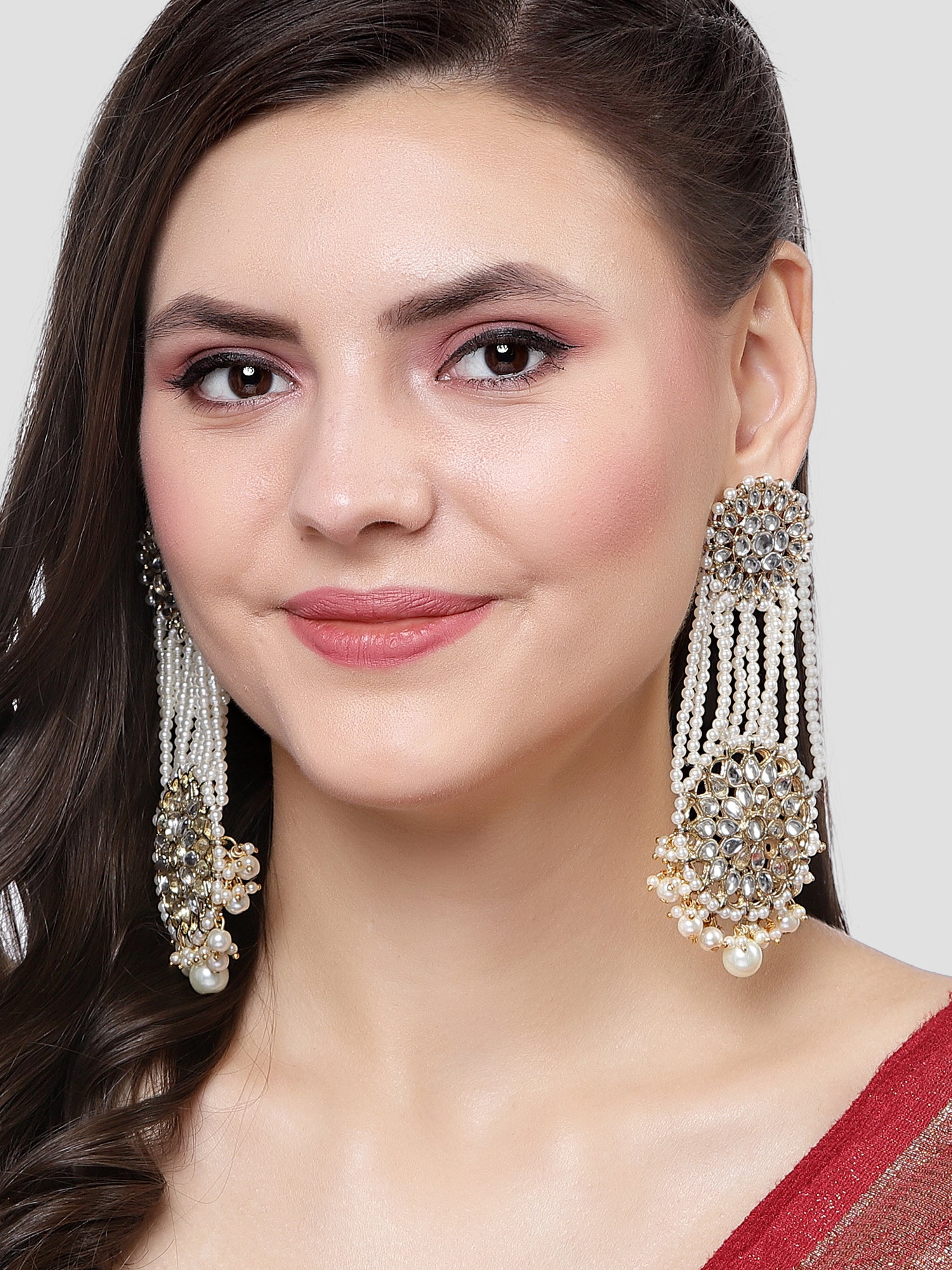 Karatcart Gold Plated Pearl Beaded Kundan Dangler Earrings for Women