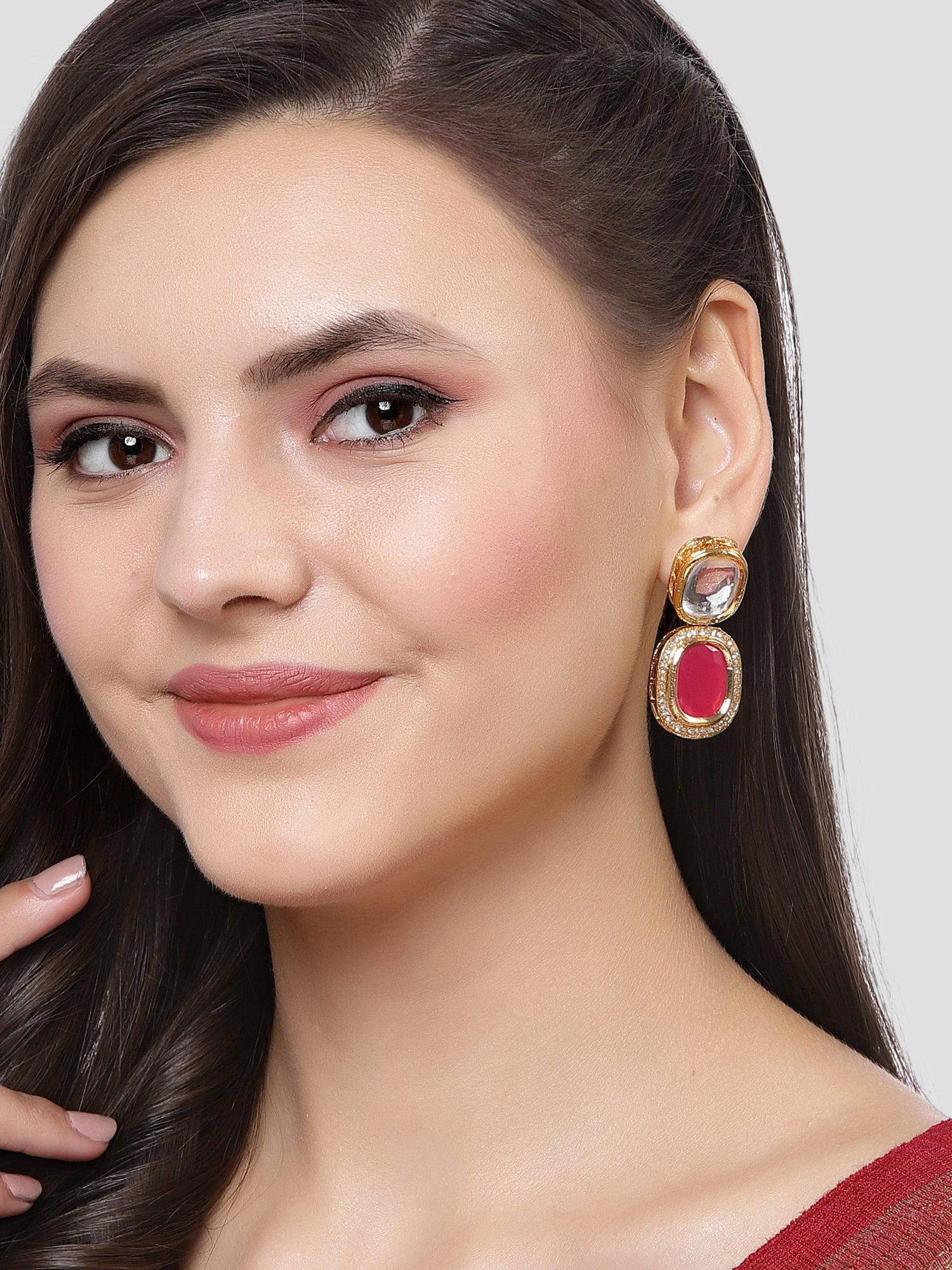 - This is a Red Earrings by Brand Karatcart which has Polki stones.This is Gold Plated. We at KARATCART understand your desire to look the best on any day & we thrive in making any day an occasion. Every individual at Karatcart carries a passion for jewellery and it reflects in our beautiful designs as well as in our breathtaking craftsmanship. We create unique jewellery so you can make heads turn..