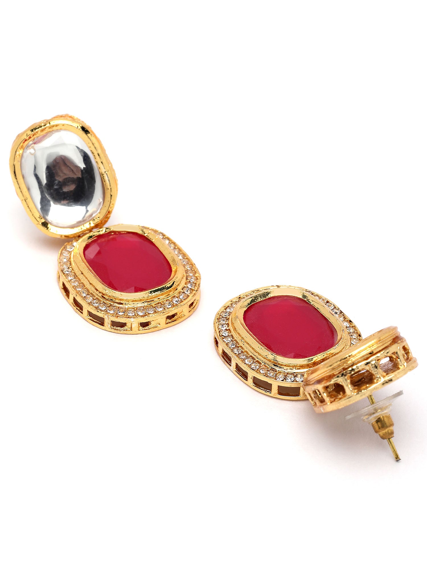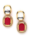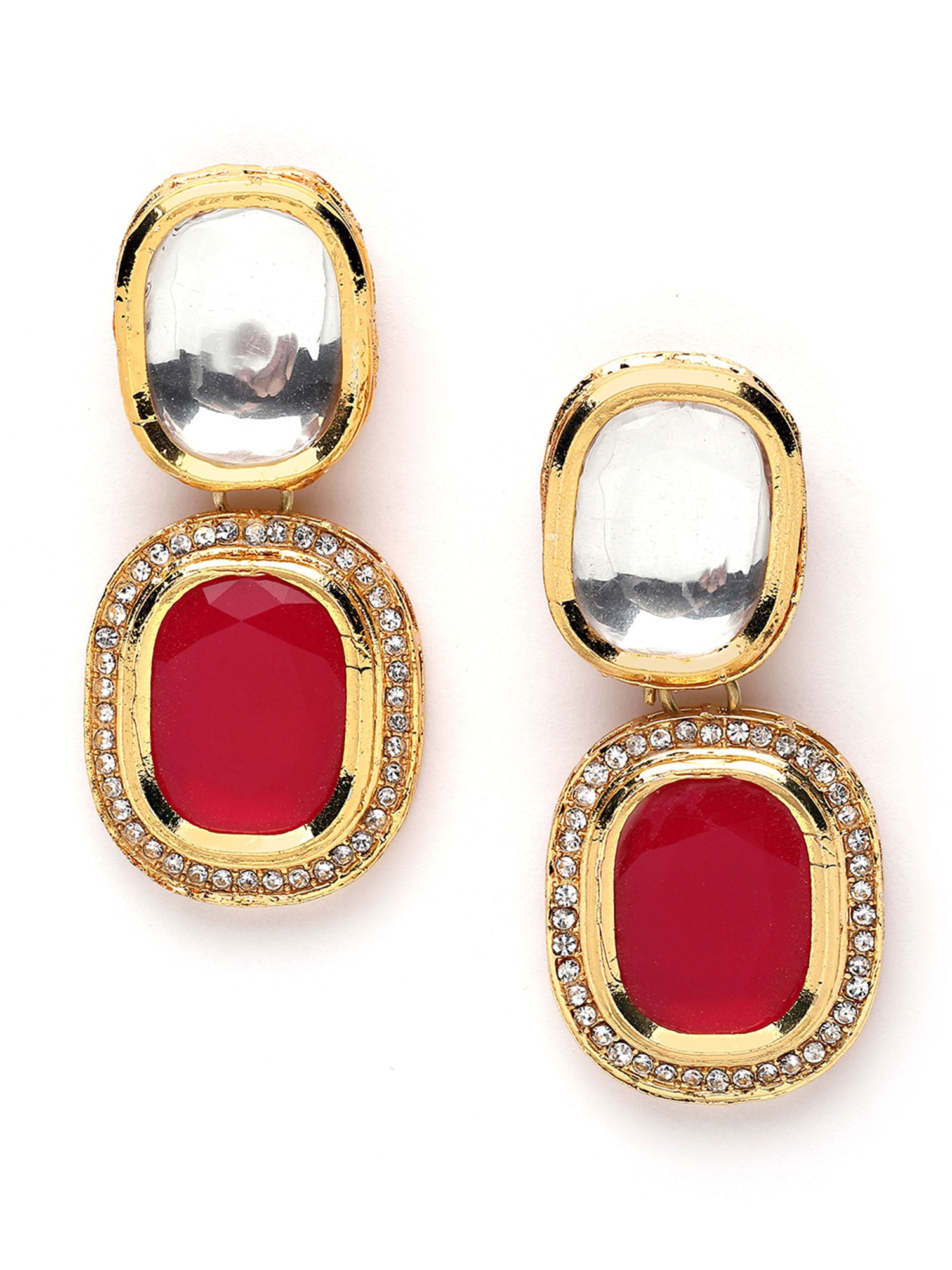 Karatcart Gold Plated Red Polki Kundan Drop Earrings for Women