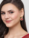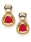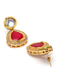 Karatcart Gold Plated Handcrafted Red Polki Kundan Drop Earrings for Women