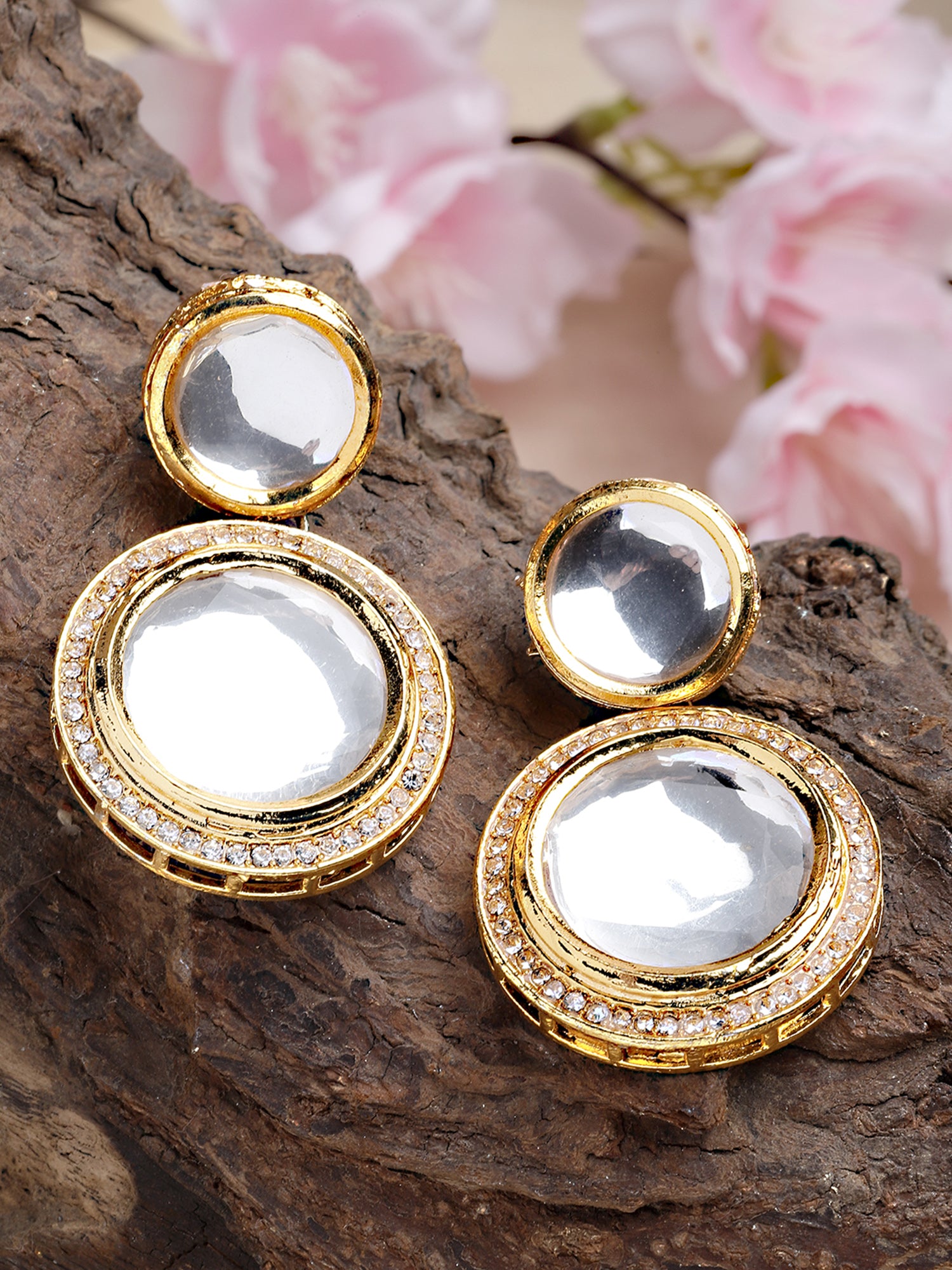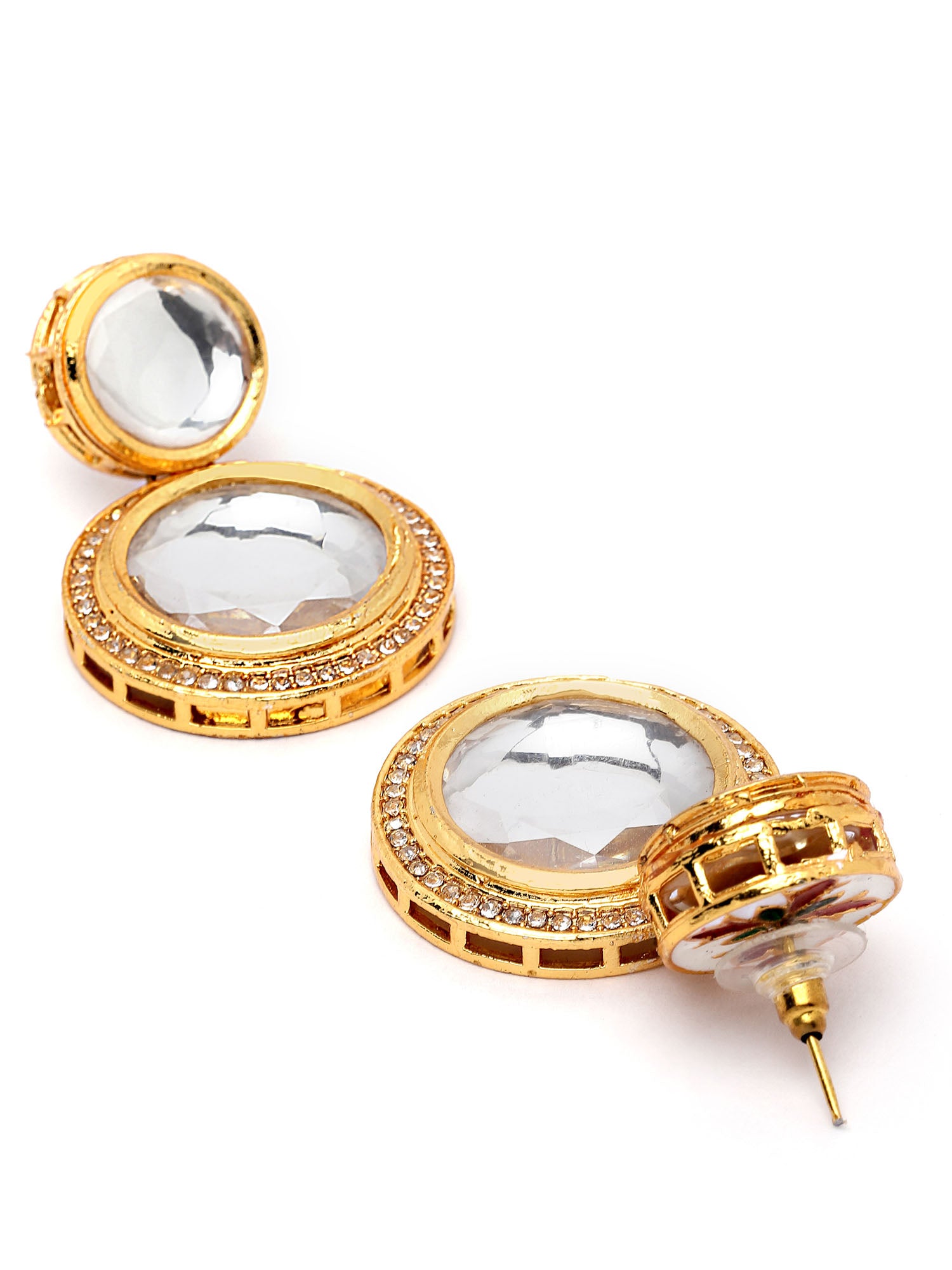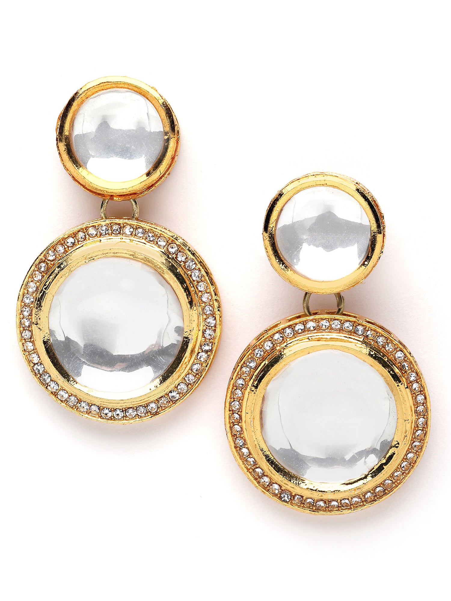 Karatcart Gold Plated Handcrafted Round Polki Kundan Drop Earrings for Women