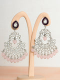 Karatcart Oxidised Silver Pink Beads Purple Kundan Chandbali Earrings for Women