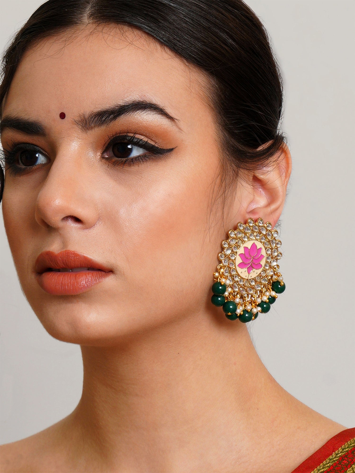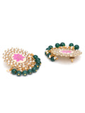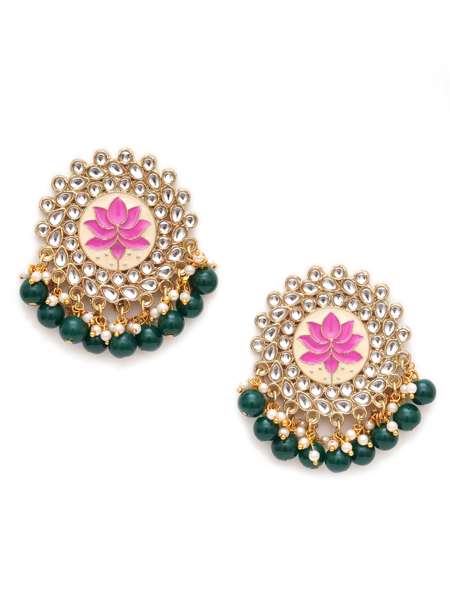 Karatcart Gold Plated Pink Meena Green Beads Kundan Stud Earrings for Women