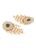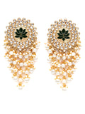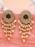 Karatcart Gold Plated Green Meena Pearl Beads Kundan Dangler Earrings for Women