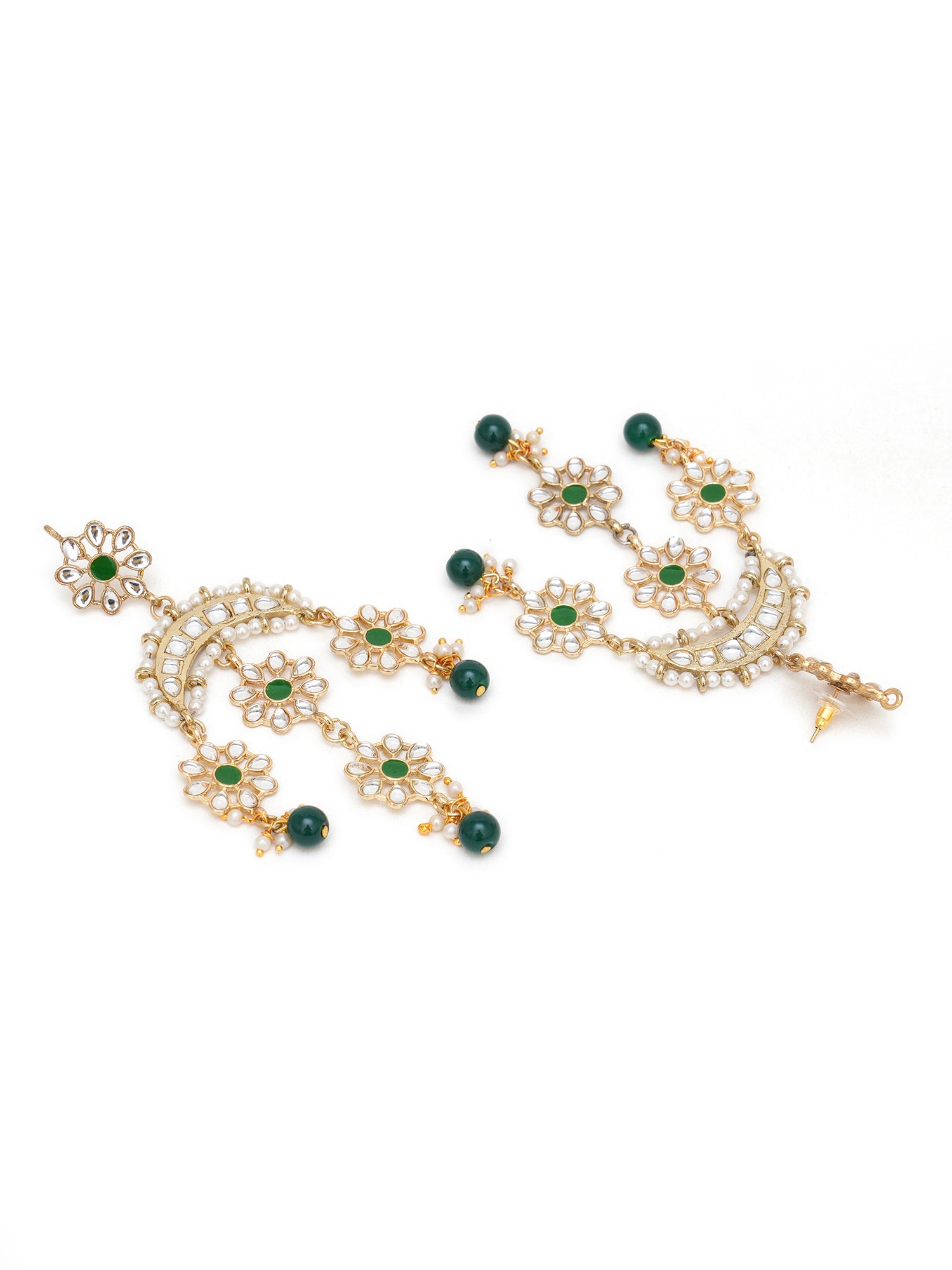 Karatcart Gold Plated Floral Green Meena Kundan Dangler Earrings for Women